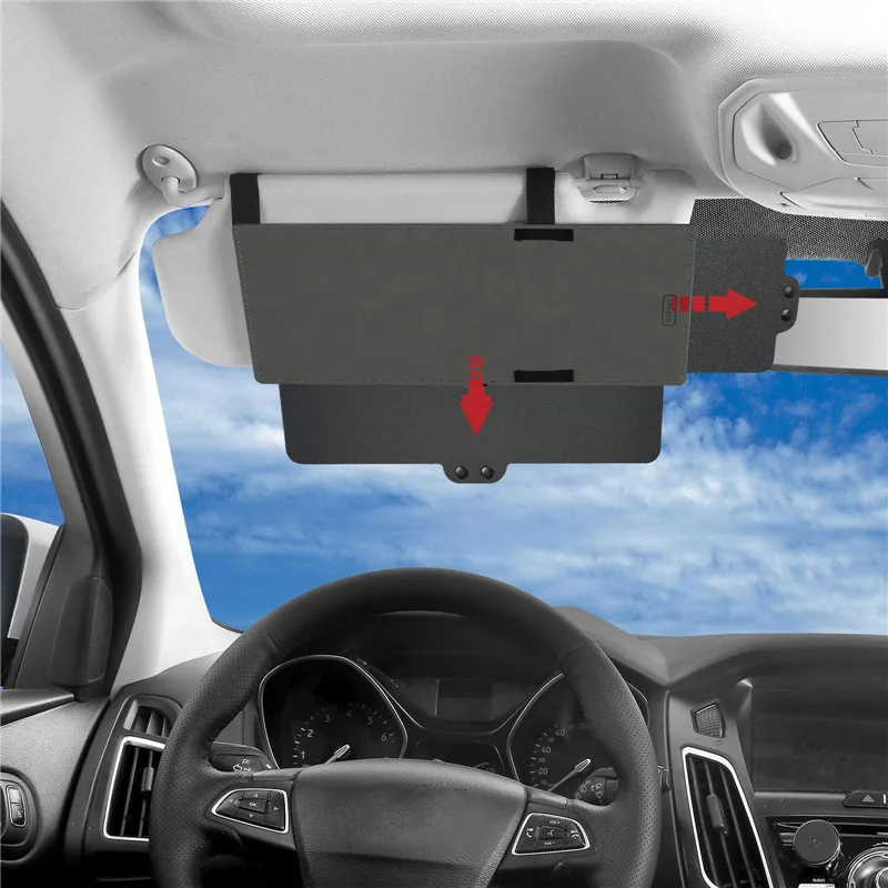 Прочный материал: наш автомобильный расширитель козырька изготовлен из высокопрочного полиуретана и ПК с прочными эластичными ремешками. Перед использованием солнцезащитного козырька обязательно снимите защитную пленку.
