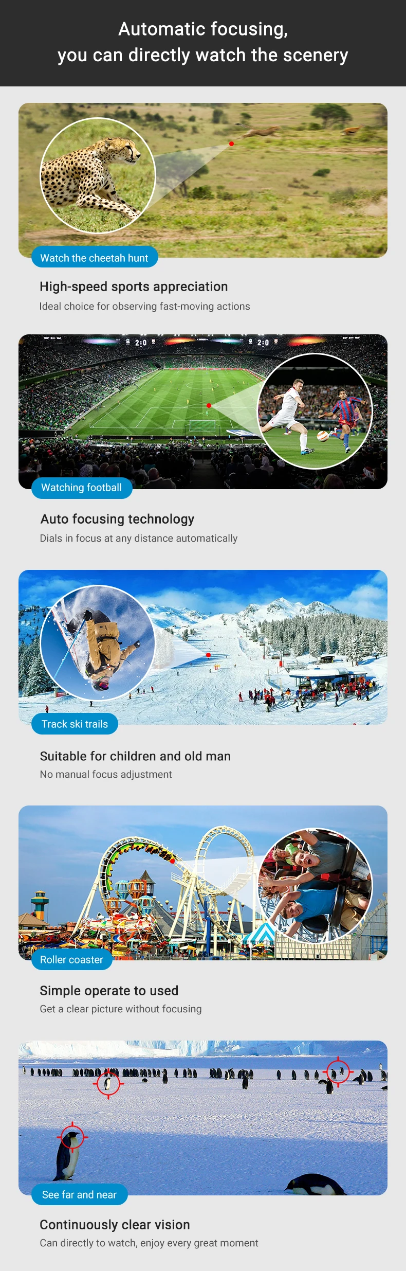* Автоматическая Фокусировка: фиксированный фокус прост в использовании, идеально подходит для просмотра быстро движущихся брезентов, не часто прикрепляя фокус.