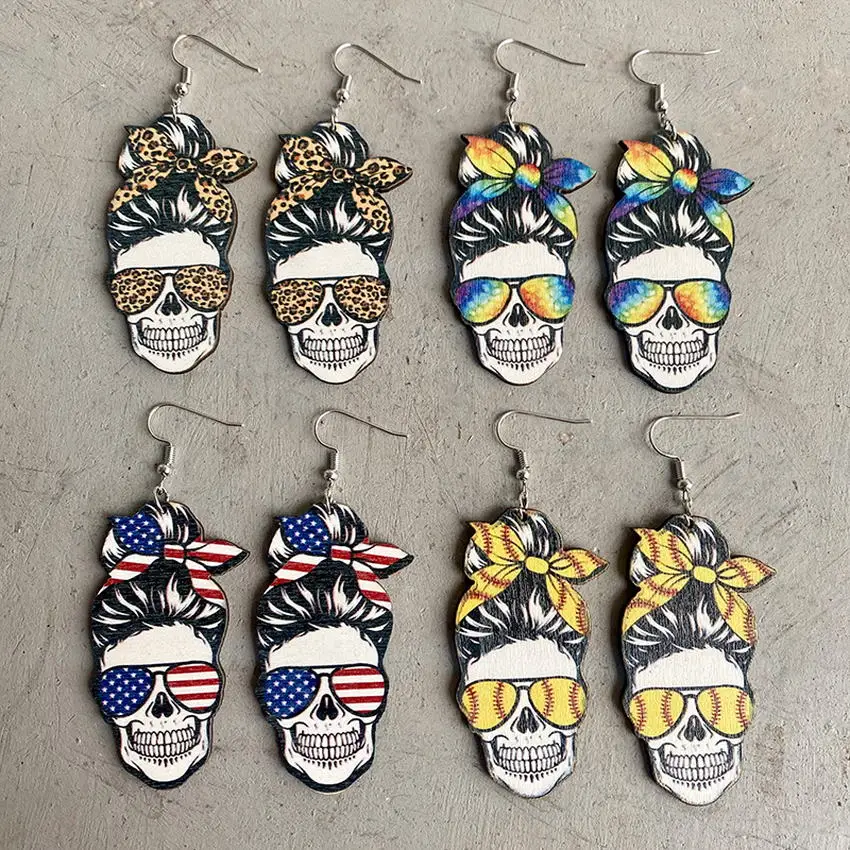 Гепард грязный Бун волос печати галстук краситель деревянные Momlife Висячие серьги для женщин Смешные бейсбольные солнцезащитные очки головная повязка мама серьги с деревом жизни