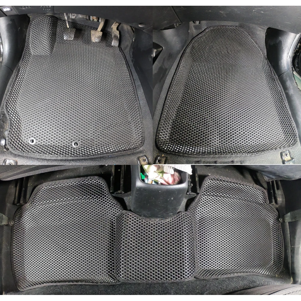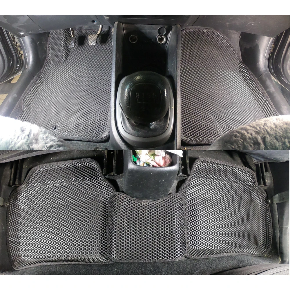 Новинка мира ковров! Коврики с Пресс Бортами. На данный момент мы являемся единственным производителем, кто формует коврики прессом, а не вручную. За счет чего борта получаются идеально ровные и не искажаются ячейки на материале. Так же за счет того, что коврики делаются специальным прессом, мы можем поставить цену на много ниже чем у остальных за счет экономии на рабочей силе. Формованные коврики EVA выполнены из приятного и лёгкого материала Ethylene Vinyl Acetate, который обеспечивает постоянный комфорт и удобство. Глубокая ячеистая структура хорошо удерживает воду и мусор даже во время активного вождения автомобиля. Чтобы очистить коврики от скопившейся грязи, достаточно перевернуть их. Материал ковров прекрасно переносит высокие и низкие температуры, спокойно переносит контакты с химическими реагентами. Не деформируется и не пахнет при жаре до +50 °С, не становится хрупким и не трескается при морозе до -40 °С. Основной идеей данных ковров является то, что данные ковры можно эксплуатировать без бортов, ведь вся влага собирается в самой текстуре ковриков. Вкупе с этим, данные коврики очень легко вытряхиваются от грязи. Все это работает если пол автомобиля полностью ровный, в том числе под педалями. Если же пол автомобиля не ровный, то влага, собирающееся на неровностях будет стекать в соседние соты, а затем за пределы коврика, что недопустимо. Именно поэтому начали появлятся eva 3d коврики. Коврики, которые повторяют контур пола автомобиля, со всеми его неровностями. Это гарантирует задержку влаги и грязи в пределах ковриков, да и к тому же такие коврики более лаконично смотрятся в салоне авто.