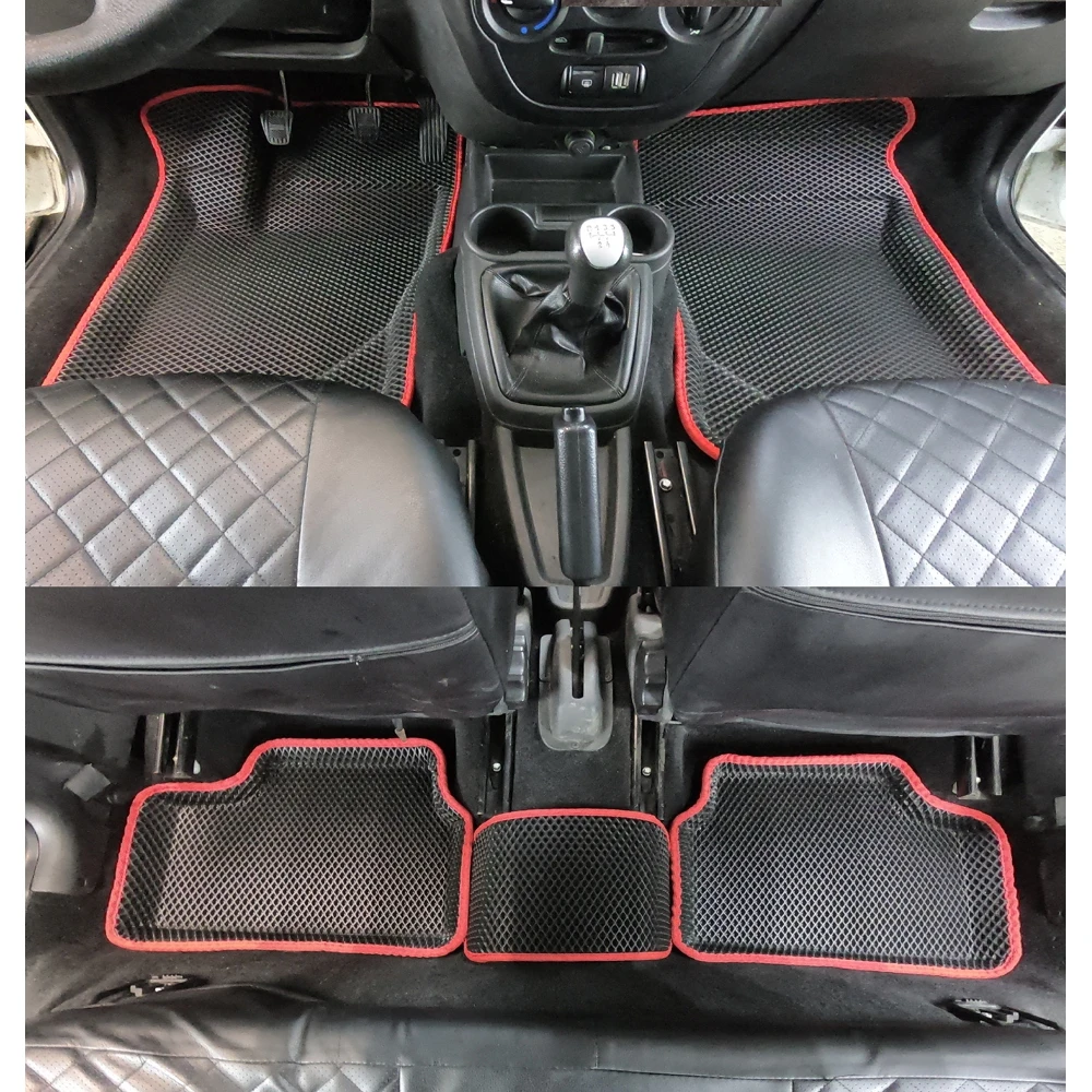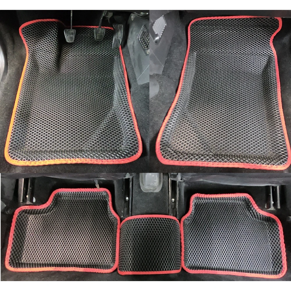 Новинка мира ковров! Коврики с Пресс Бортами. На данный момент мы являемся единственным производителем, кто формует коврики прессом, а не вручную. За счет чего борта получаются идеально ровные и не искажаются ячейки на материале. Так же за счет того, что коврики делаются специальным прессом, мы можем поставить цену на много ниже чем у остальных за счет экономии на рабочей силе. Формованные коврики EVA выполнены из приятного и лёгкого материала Ethylene Vinyl Acetate, который обеспечивает постоянный комфорт и удобство. Глубокая ячеистая структура хорошо удерживает воду и мусор даже во время активного вождения автомобиля. Чтобы очистить коврики от скопившейся грязи, достаточно перевернуть их. Материал ковров прекрасно переносит высокие и низкие температуры, спокойно переносит контакты с химическими реагентами. Не деформируется и не пахнет при жаре до +50 °С, не становится хрупким и не трескается при морозе до -40 °С. Основной идеей данных ковров является то, что данные ковры можно эксплуатировать без бортов, ведь вся влага собирается в самой текстуре ковриков. Вкупе с этим, данные коврики очень легко вытряхиваются от грязи. Все это работает если пол автомобиля полностью ровный, в том числе под педалями. Если же пол автомобиля не ровный, то влага, собирающееся на неровностях будет стекать в соседние соты, а затем за пределы коврика, что недопустимо. Именно поэтому начали появлятся eva 3d коврики. Коврики, которые повторяют контур пола автомобиля, со всеми его неровностями. Это гарантирует задержку влаги и грязи в пределах ковриков, да и к тому же такие коврики более лаконично смотрятся в салоне авто.