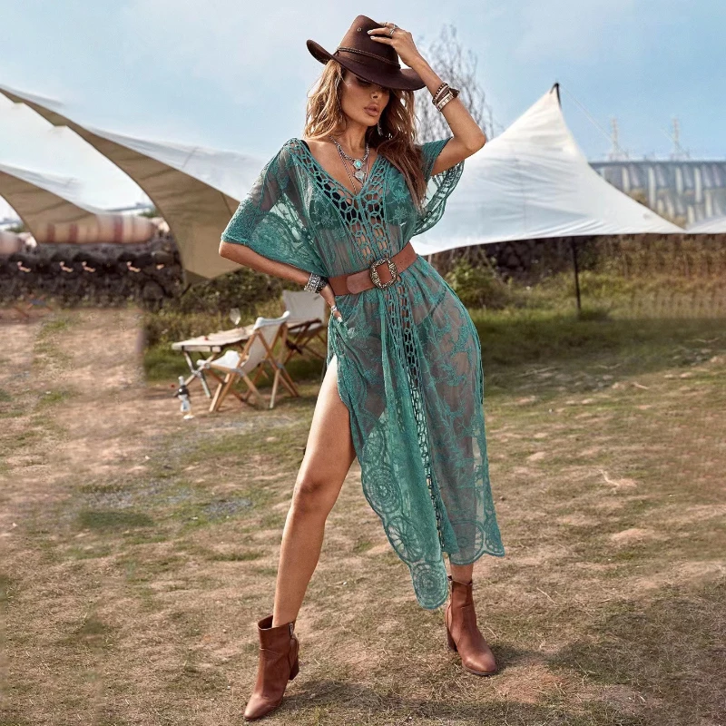 Женское пляжное платье-бикини 2022, Пляжное платье, длинное Кружевное Платье макси с разрезом