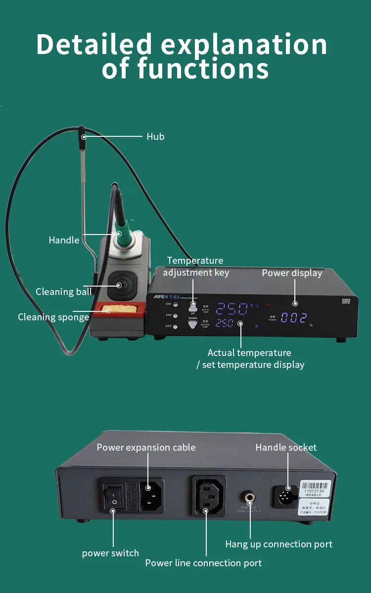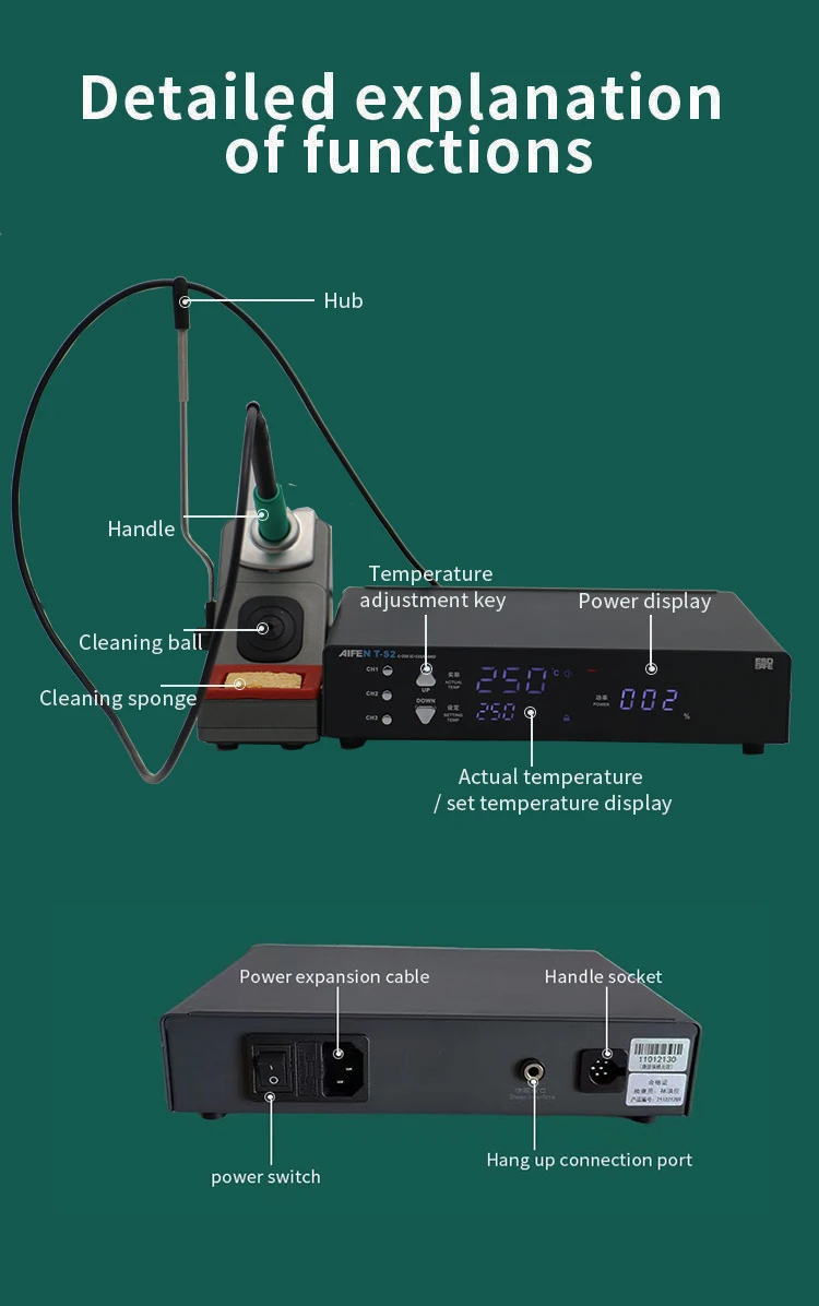 AIFEN-T-S2,JBC Station de soudage électronique, расширительный блок, двойная паяльная станция, pointes de fer à souder C210/C245/C115
