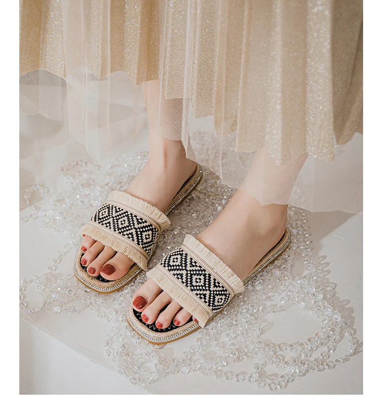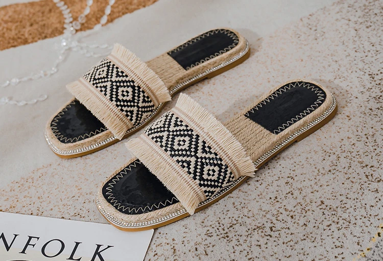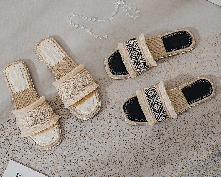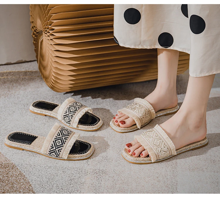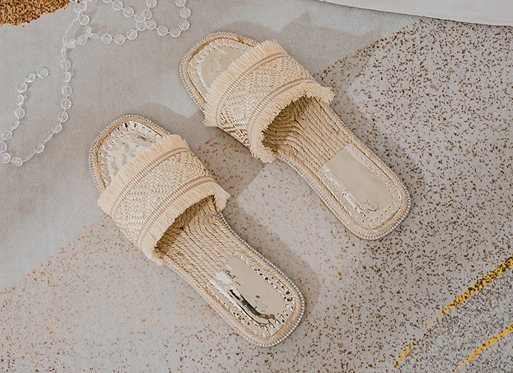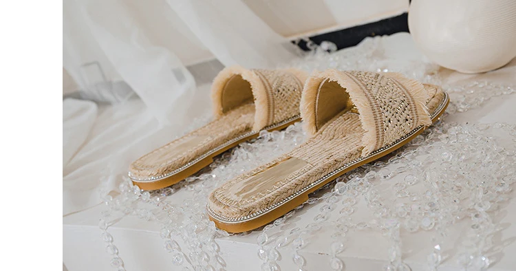 Шлепанцы женские на плоской подошве соломенные Сандалии Повседневная пляжная