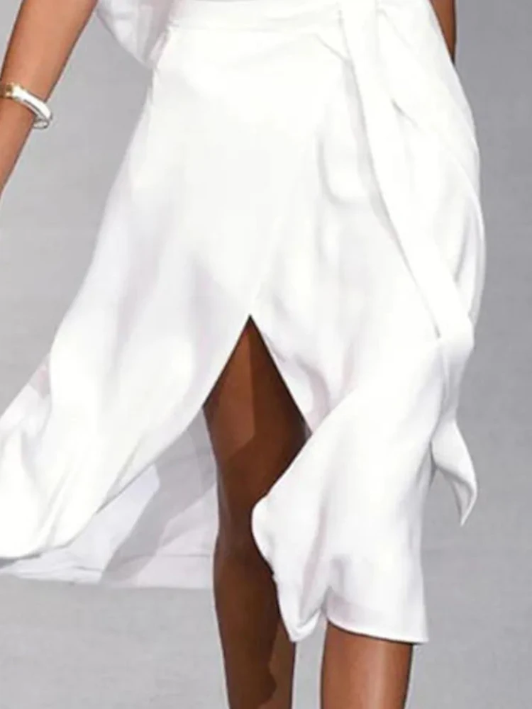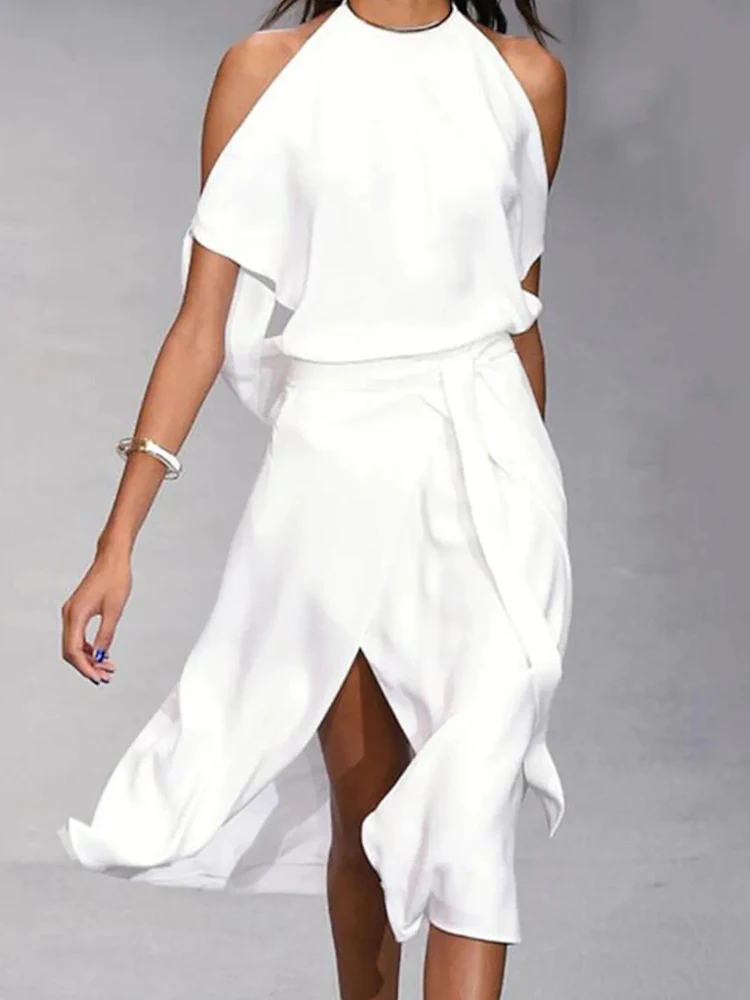 2022 Новое модное летнее женское платье большого размера плюс с коротким рукавом однотонное Повседневное платье с разрезом на плечах