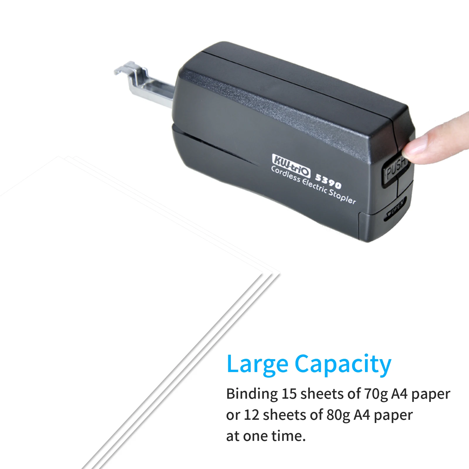 Сильная совместимость; Штапельная стойка может держать 50 скоб одновременно. Связывание 15 листов бумаги формата А4 70 г или 12 листов бумаги формата А4 80 г одновременно.