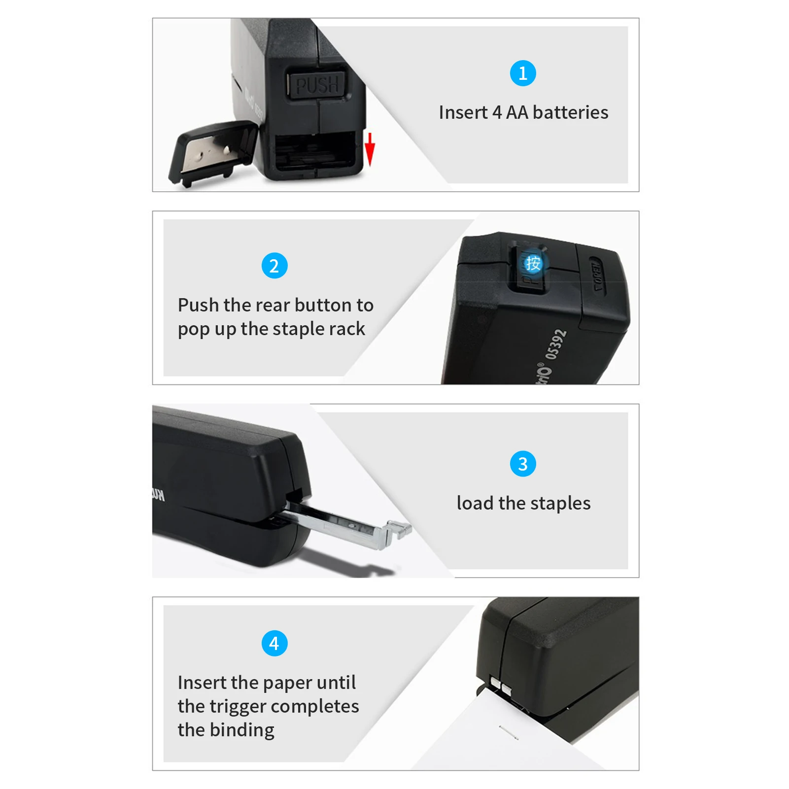 Электрический степлер: 4xAA батареи (не входят в комплект) источник питания, портативный и удобный для переноски в путешествие, школу и т. Д.