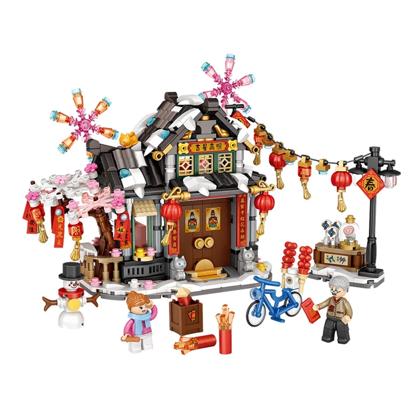 Loz 1243 1244 1223 Китай Мини уличный продуктовый магазин тема рождественский дом строительные блоки Санта-Клаус город кирпич развивающие игрушки