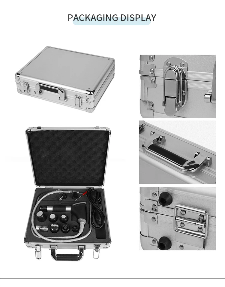 Ударно-волновая терапевтическая аппаратура изменяет пневматические импульсные звуковые волны, трансформируемые в точный баллистический шок сжатого газа для получения энергии, через физическую среду для передачи человеческого тела, это использование пули тела привода внутри ручки для импульсного воздействия место действия на боль человека имеет очень хорошие результаты. Общие эффекты: улучшает кровообращение и ускоряет заживление костей и анальгетические эффекты.