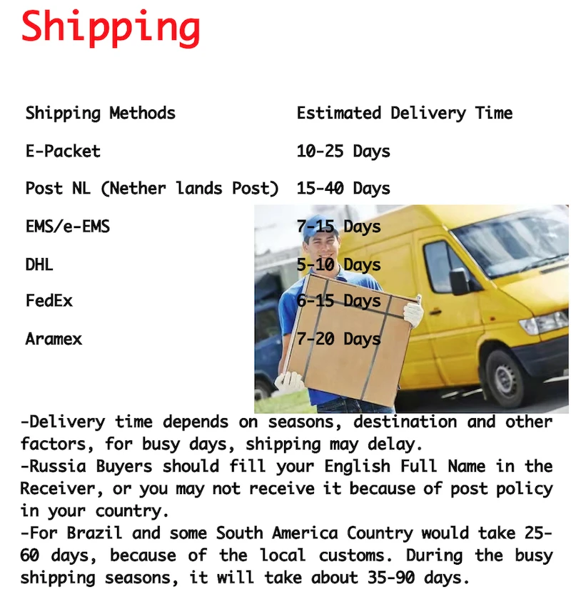 Доставка: по DHL, UPS, TNT, FEDEX, воздуху, морю
