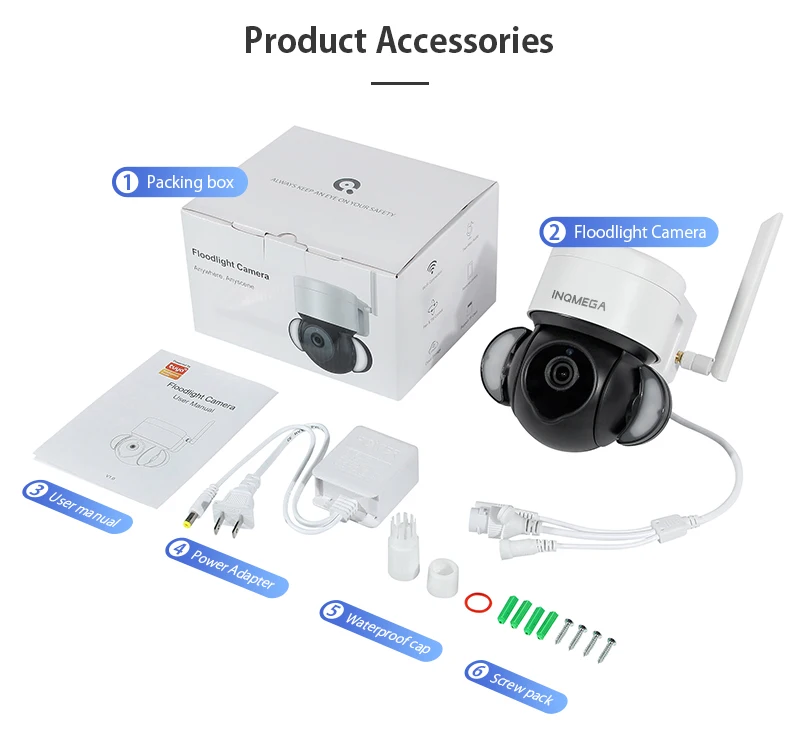«【Легкое и быстрое подключение и гарантия» сравните с другой наружной камерой безопасности, эта камера безопасности прожектора очень проста в установке. Камера поставляется с 12-месячной Гарантией и 24-часовой клиентской службой