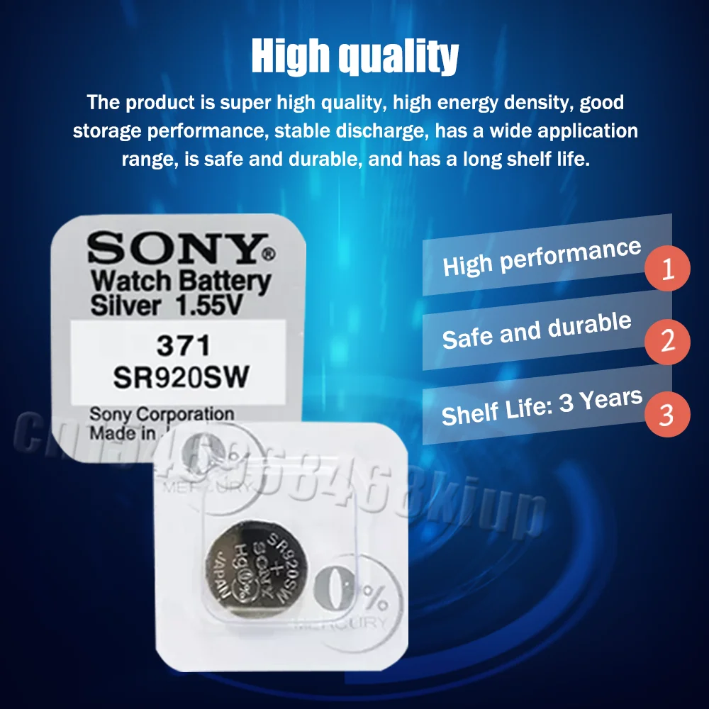 10 шт. оригинальный Sony 371 SR920SW 920 LR920 LR69 AG6 371A 1,55 V Серебряная оксидная Кнопка Одиночная зернистая упаковка для часов игрушки