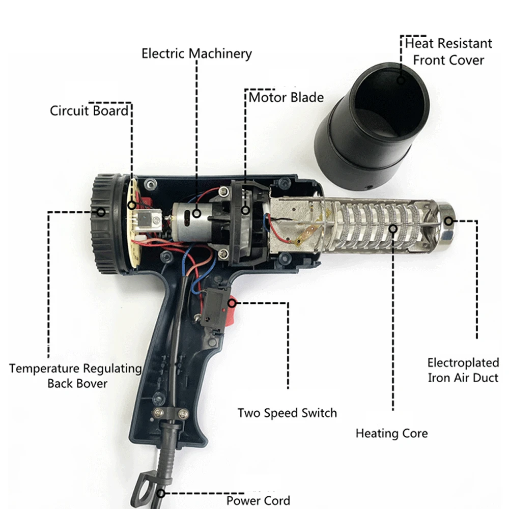 【Переменный контроль температуры 】-в отличие от других тепловых пистолетов с двумя температурными режимами, Наши тепловые пистолеты обеспечивают переменный контроль температуры. Черный циферблат обеспечивает реstat-тип нагрева, Высокий/Низкий переключатель на его ручке обеспечивает контроль потока воздуха. Диапазон температур от 60 ℃-600 ℃.