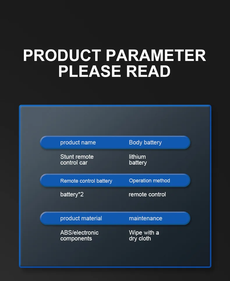 Функция: вперед/назад, поворот влево/вправо, преобразованиеВремя зарядки: 100 минВремя использования: около 35 минутКорпус аккумулятора: 3,7 V 500mAhБатарея дистанционного управления: 2 * AA (не входит в комплект)Расстояние дистанционного управления (метров): 35 метров
