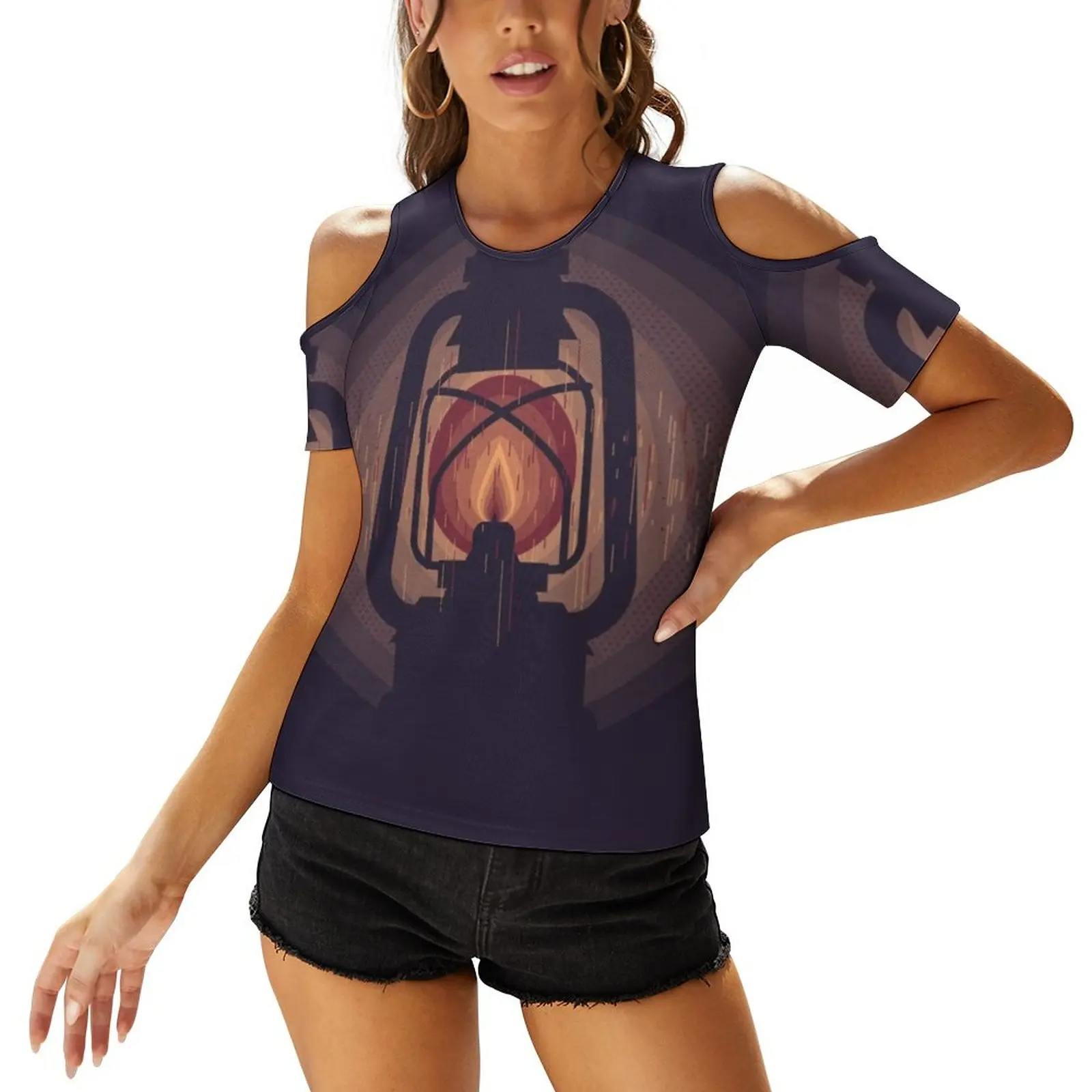 Женская футболка с коротким рукавом V-образным вырезом и цветочным принтом -