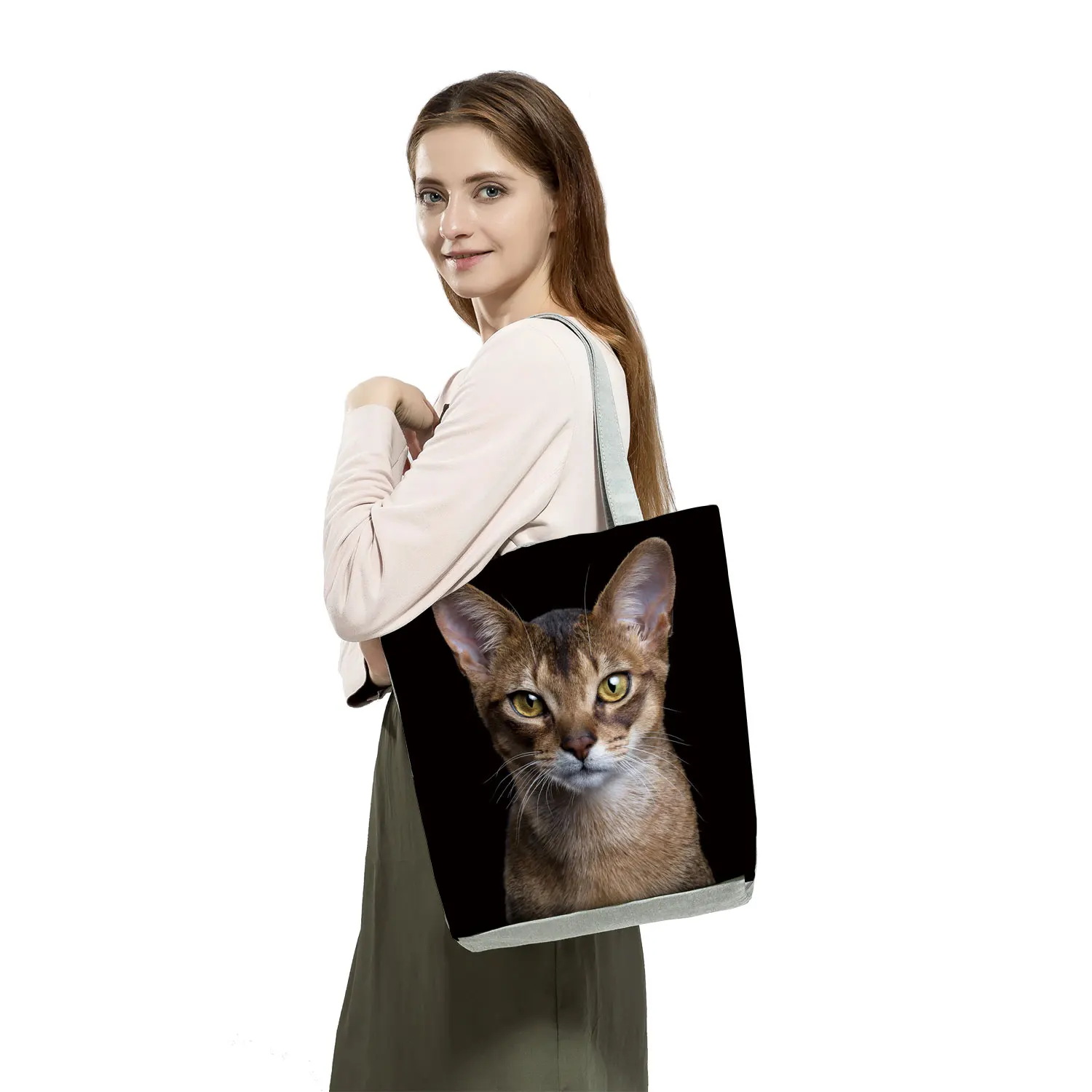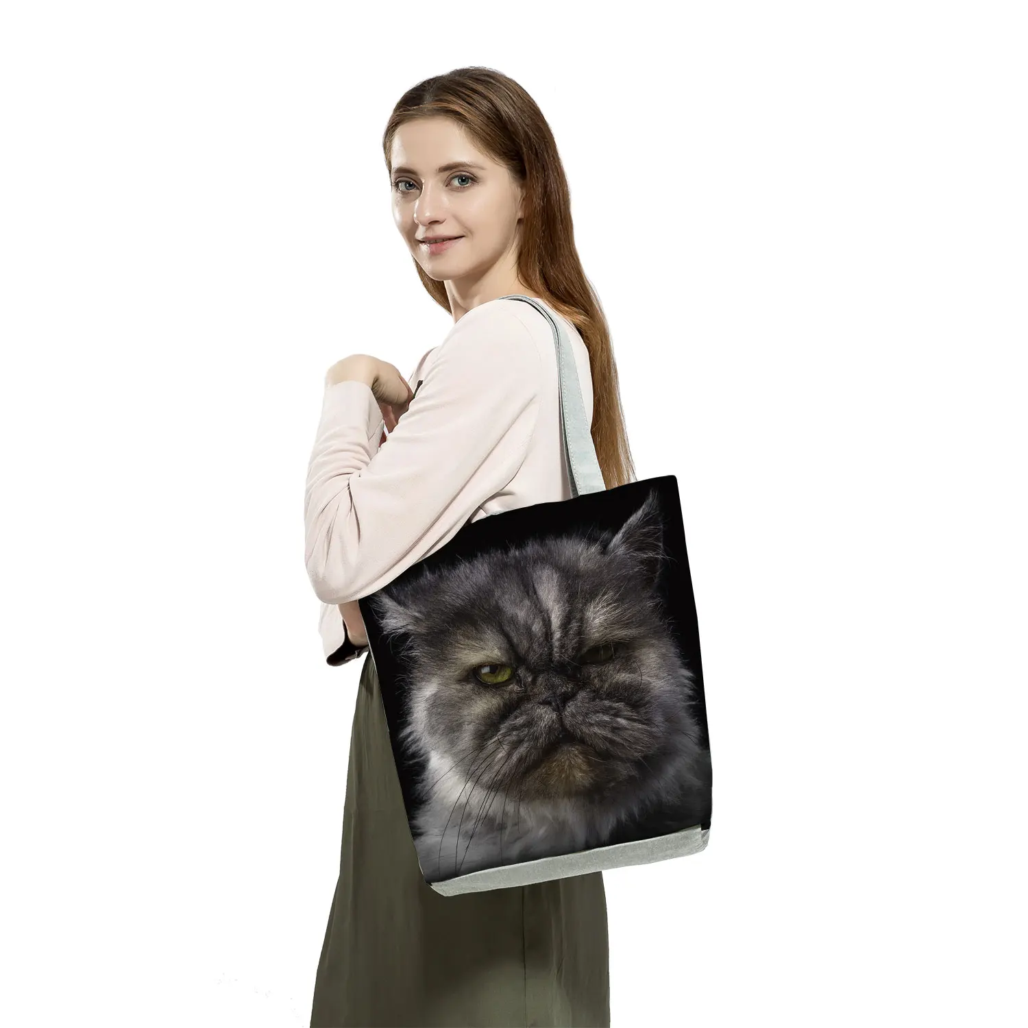 Женские сумки с принтом кошки собаки, Сумка с изображением животного, черные сумки на плечо, Большая вместительная сумка для покупок, Женская дорожная пляжная сумка, Прямая поставка