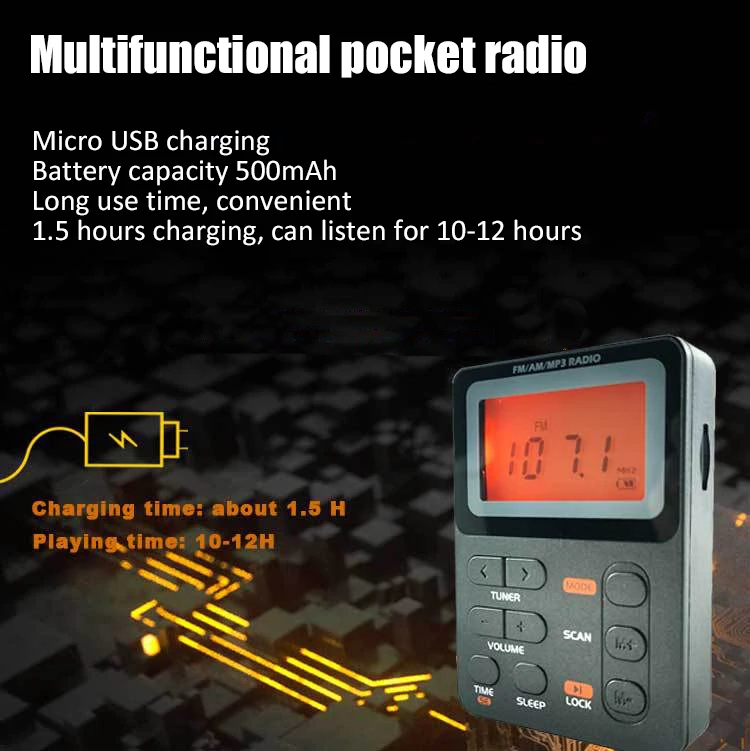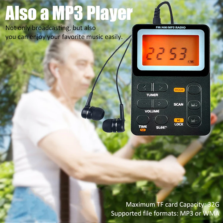 Карманный AM/FM радио портативный ЖК-дисплей радио приемник мини MP3 плеер с наушником Универсальный Walkman Поддержка TF карты воспроизведения