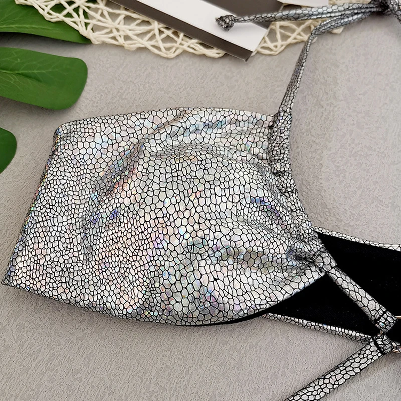 Слитный купальник с серебряными блестками женский вырезами 2022 сексуальный