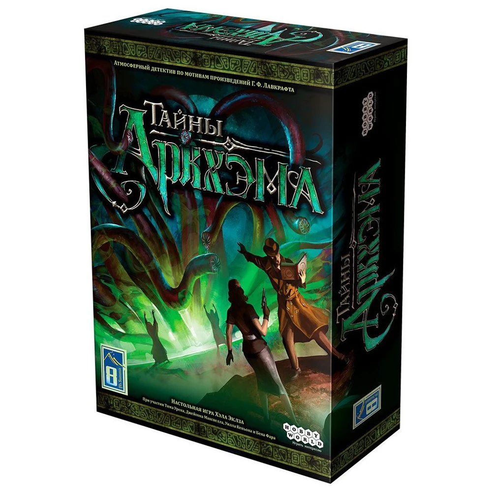 | Комплектация | Карта Аркхэма Книга расследований Адресная книга 8 газет 12 карт допуска Счётчик времени и два жетона Лист союзников Правила игры |