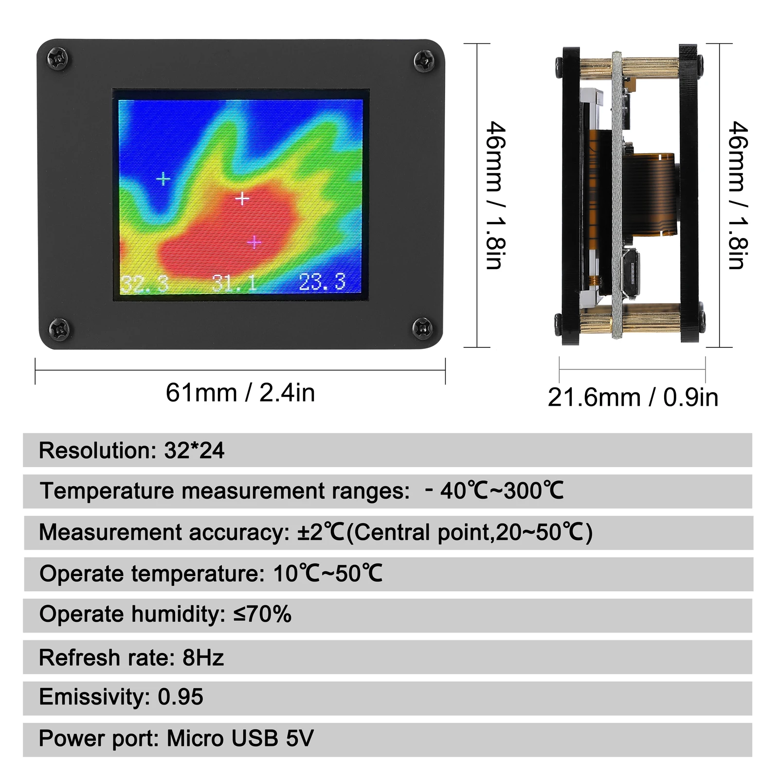 Это портативный и многофункциональный тепловизор, компактный и легкий, с 1,8 дюймов TFT экран дисплея, вы можете увидеть данные более четко. Он может использоваться в различных ситуациях и является незаменимым инструментом для домашнего и промышленного использования. Приходите и попробуйте, это не подведет вас.