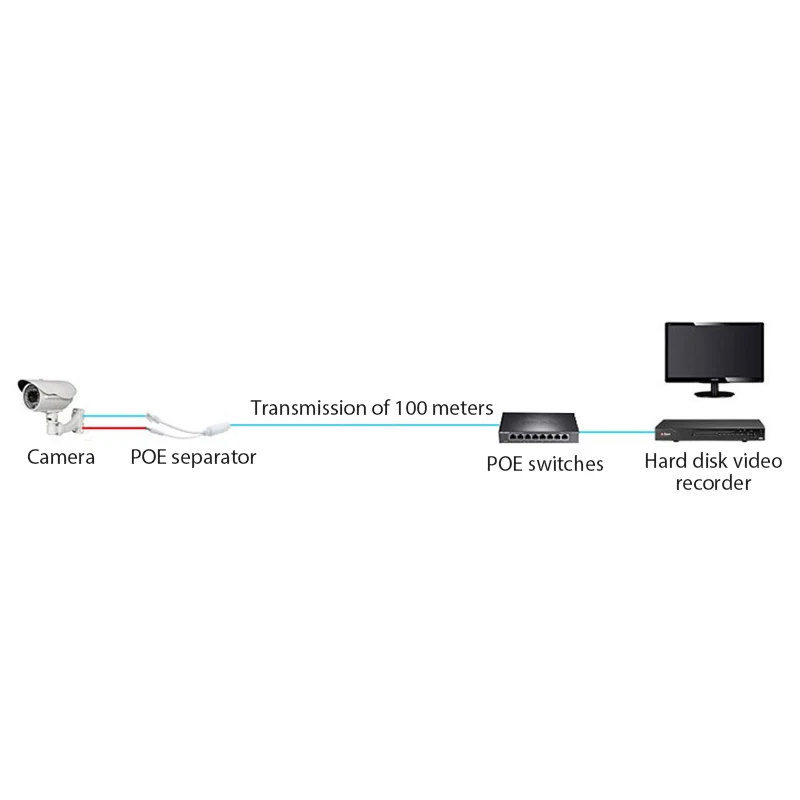 1. 48V стандартный POE водонепроницаемый разветвитель, используется со коммутатор питания через Ethernet, легко отрегулировать передачи сигнала и источника питания обычных IP камер.