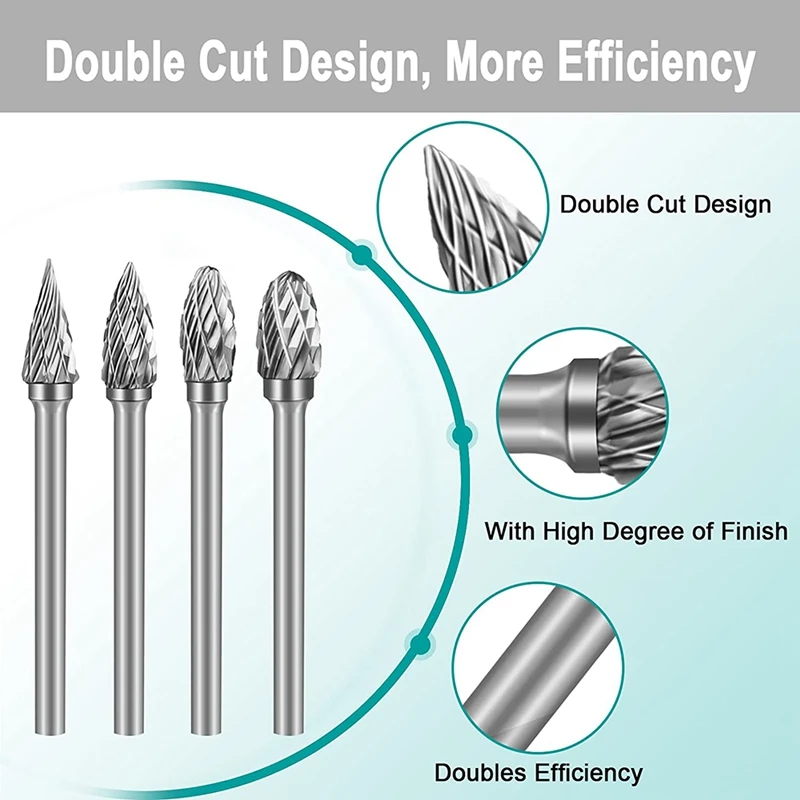 [Дизайн с двойным разрезом] линии канавки этих карбидных роторных заусенцев скрещиваются, больше подходят для объекта, плотность которого относительно низкая, например, дерево, мрамор, нефрит, керамика, изготовление ювелирных изделий из стекла, сварка, фаски, литье, Удаление заусенцев, шлифовка, портирование и скульптура головки цилиндра, И немного мягкого металла. Не для: эпоксидной смолы.