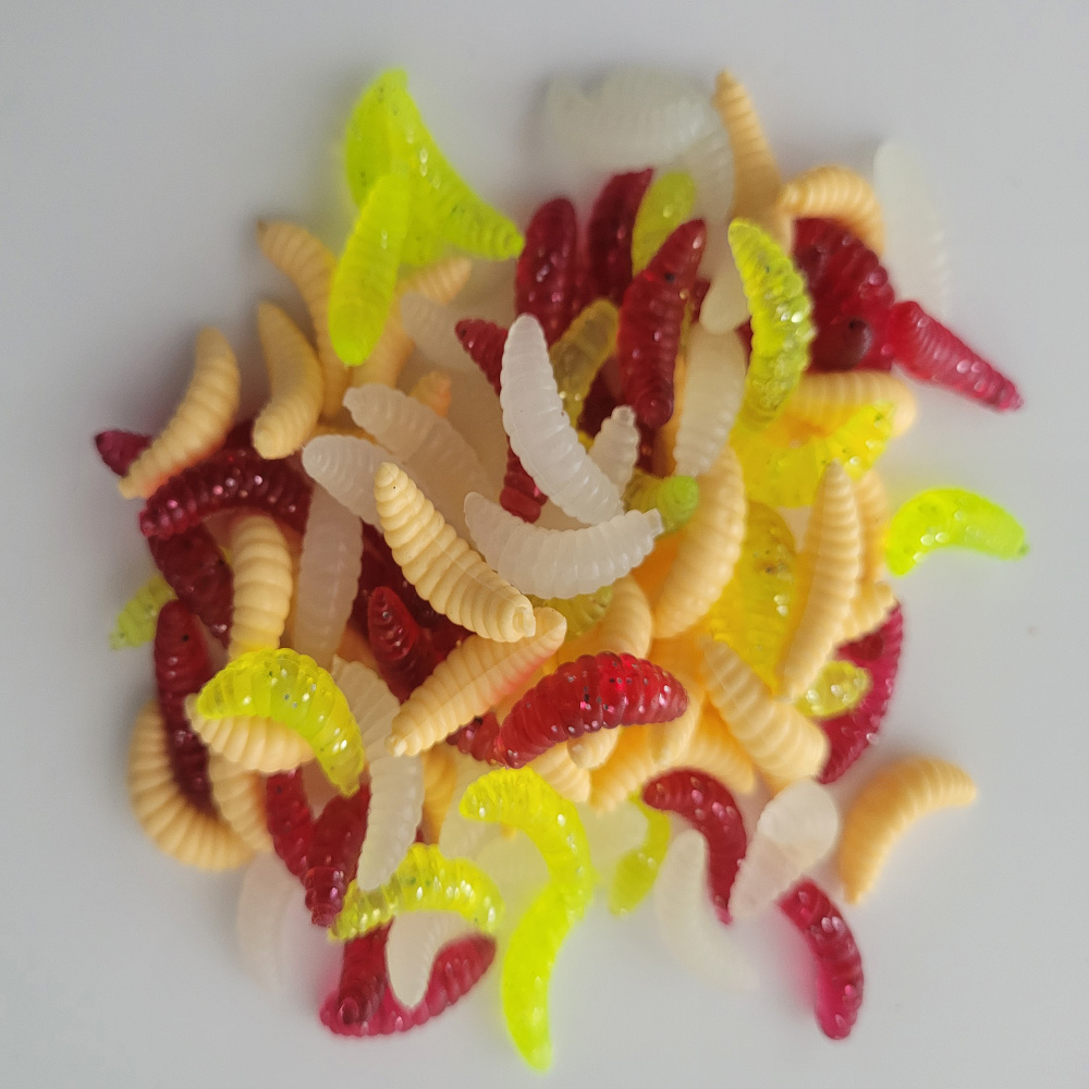 Maggot Grub Мягкие рыболовные приманки Крючки запах червей Светящиеся креветки рыбные приманки