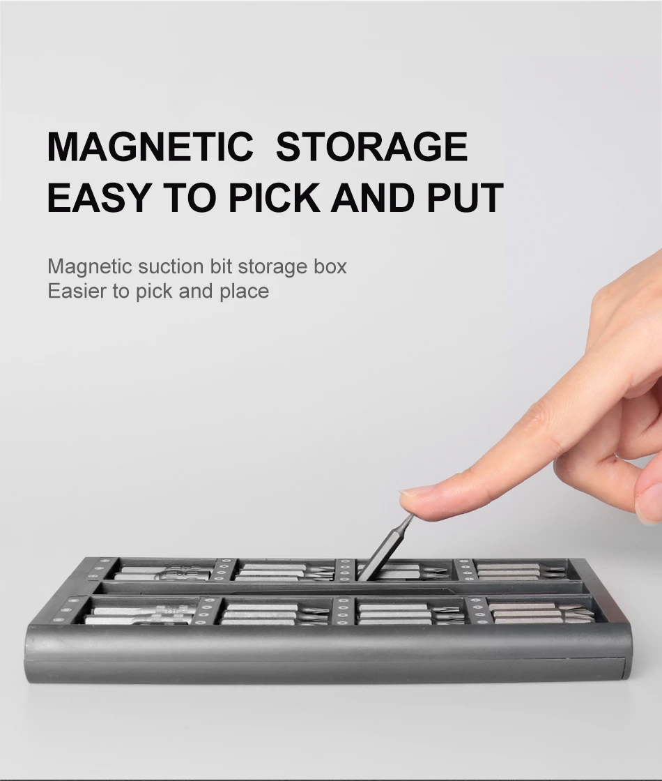 62 шт. винтовых бит и одна отвертка, посылка в коробке с магнетизмом. Легкий в эксплуатации, прочный и портативный.