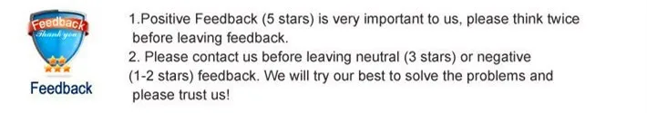 Поскольку ваши отзывы очень важны для развития нашего бизнеса, мы искренне приглашаем вас оставить нам положительные отзывы, если вы удовлетворены нашей продукцией и обслуживанием. Это займет всего 1 минуту. Спасибо! |