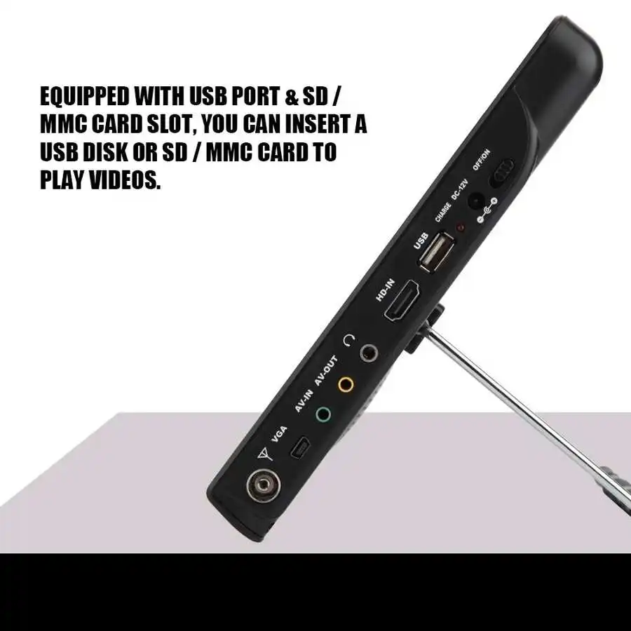 This digital TFT-LED TV, compliant with DVB-T-T2 standard, equipped with rechargeable battery, allows you watching TV outside or inside. Besides, thanks to a built-in USB port and Memory / MMC card slot, you can watch videos directly from U disk or Memory / MMC card. And HD TV show can be recorded into USB flash memory or hard disk. All in all, this portable digital TV player is really great for general daily recording or indoor / outdoor entertainment.