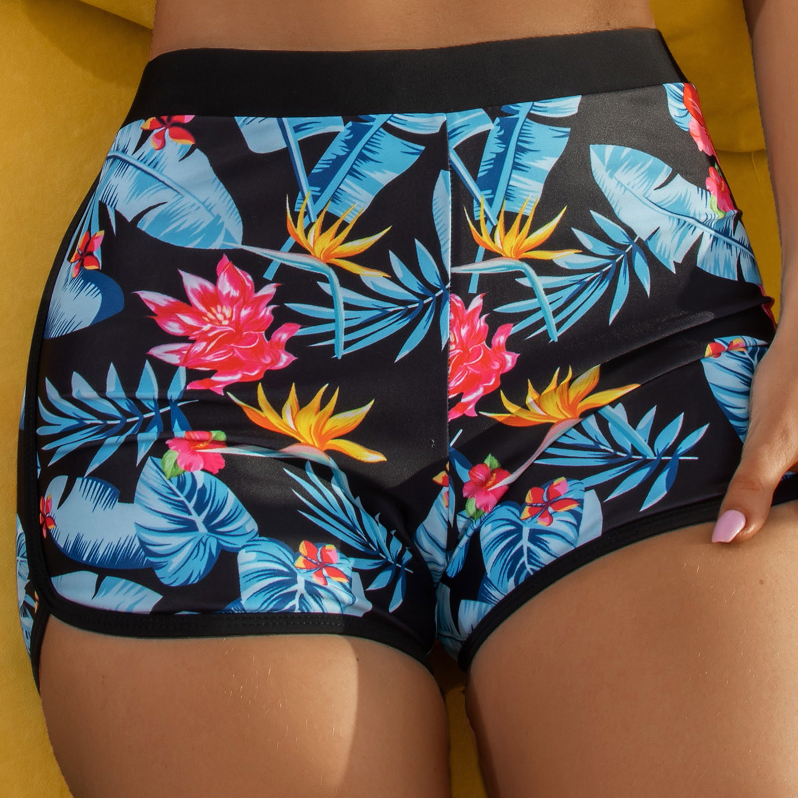 Для женщин Бикини с высокой талией и пуговицами для бега, на шнуровке, пляжные шорты для плавания Плавки бикини с лимонным принтом; Плавание шорты Танкини Плавание пляжная одежда для купания