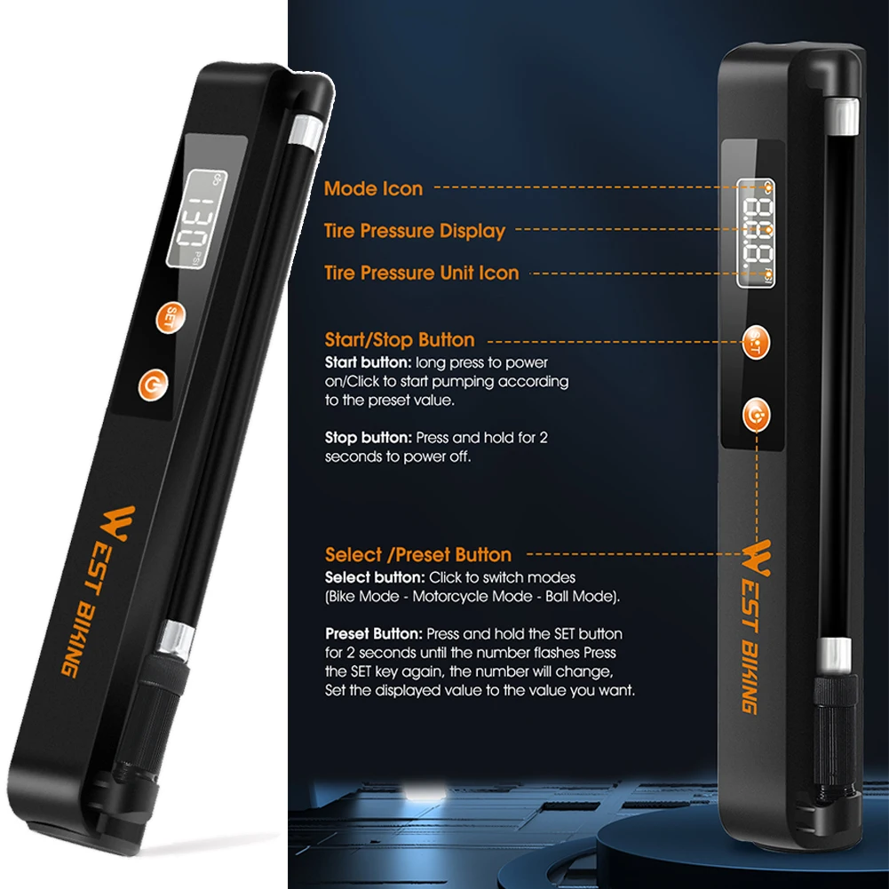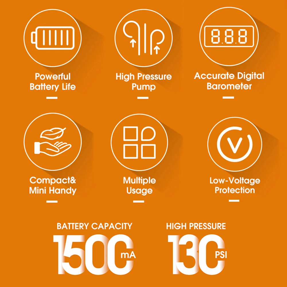 * 3. Литиевая батарея 1500 мАч, с длительным сроком службы батареи, может удовлетворить инфляционный спрос на 6 велосипедных шин.