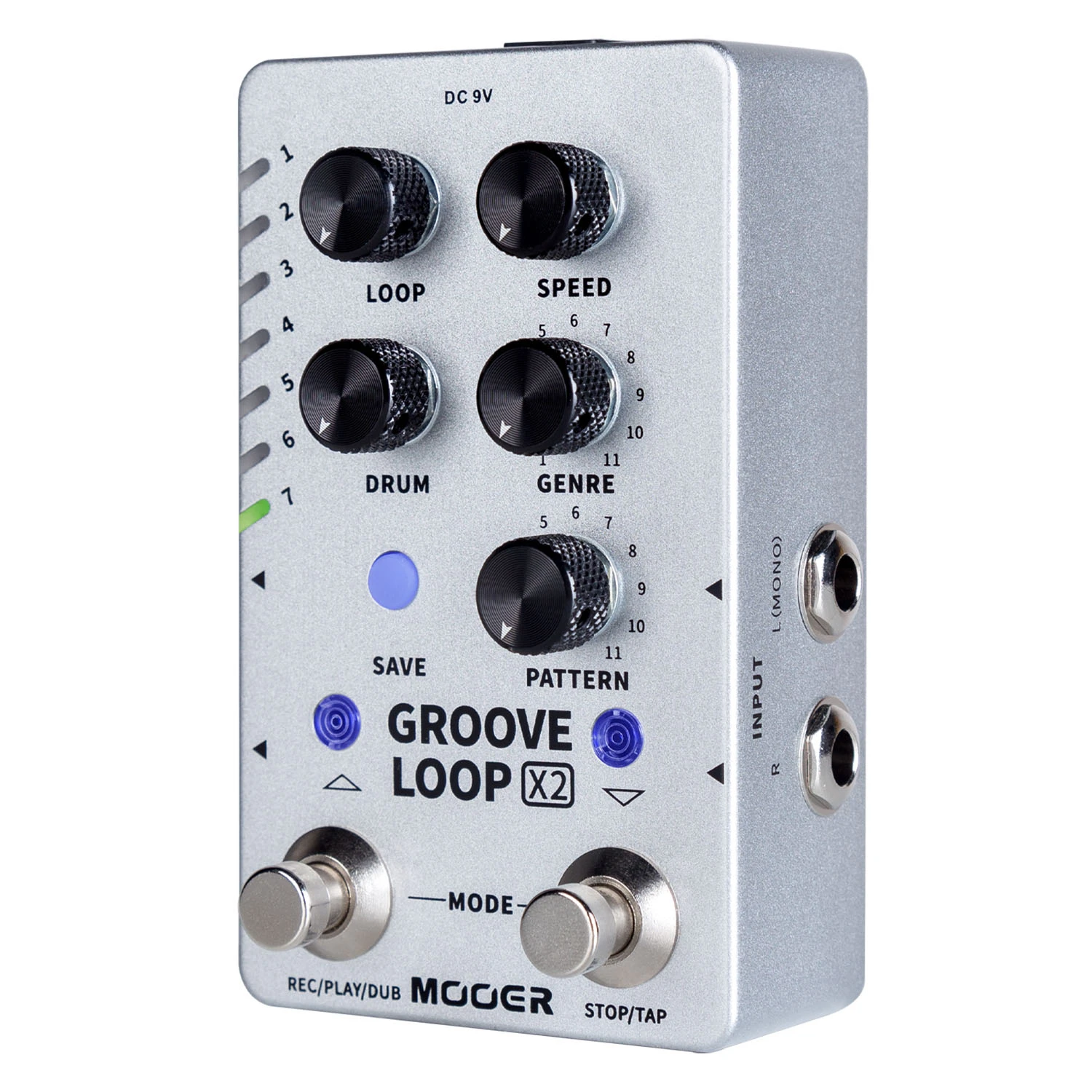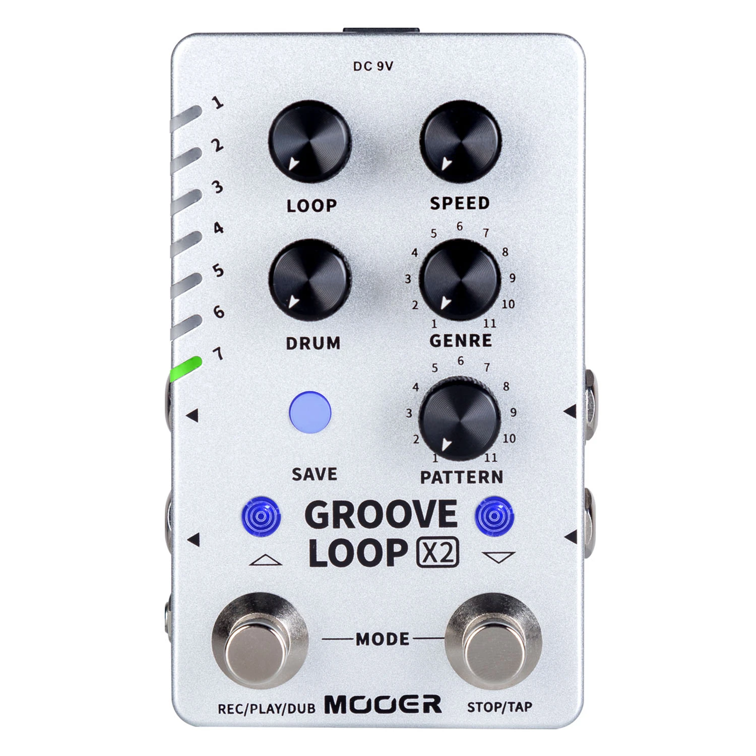 121 различные барабанные канавки, включающие 11 уникальных музыкальных стилей, встроенных в металлический корпус. Элементы управления Looper знакомы и гибки с возможностью переключения режима включения/выключения и автоматическим режимом, который обнаруживает и начинает looper, как только обнаруживается сигнал инструмента.