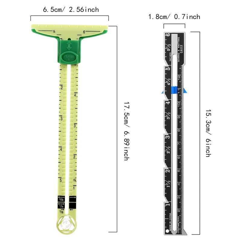 Т-образный скользящий Калибр для шитья: двухбоковая система измерения может быть применена для добавления припуска шва к узору или маркировочной линии ткани легко и быстро; Вы можете использовать его для отверстий для кнопок, таблицы припуска швов, процесса «сделай сам», «пэчворк» и т. д.; Простота в использовании и считывании чисел и значительно облегчает Шитье