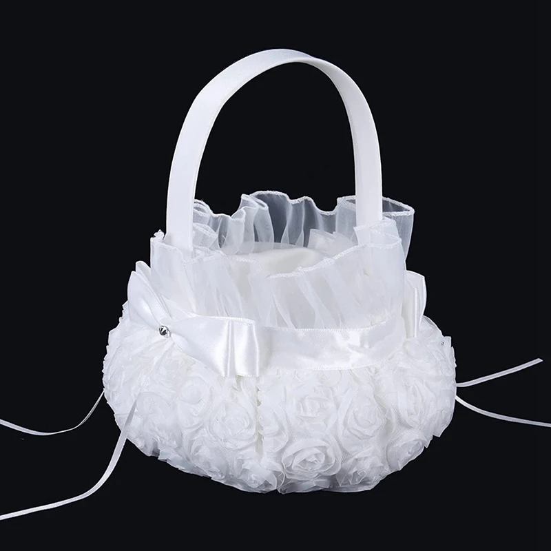 Акция! Шелковые цветочные корзины для девочек для свадеб, свадебные цветочные корзины с ручкой, белые вечерние торжественные украшения