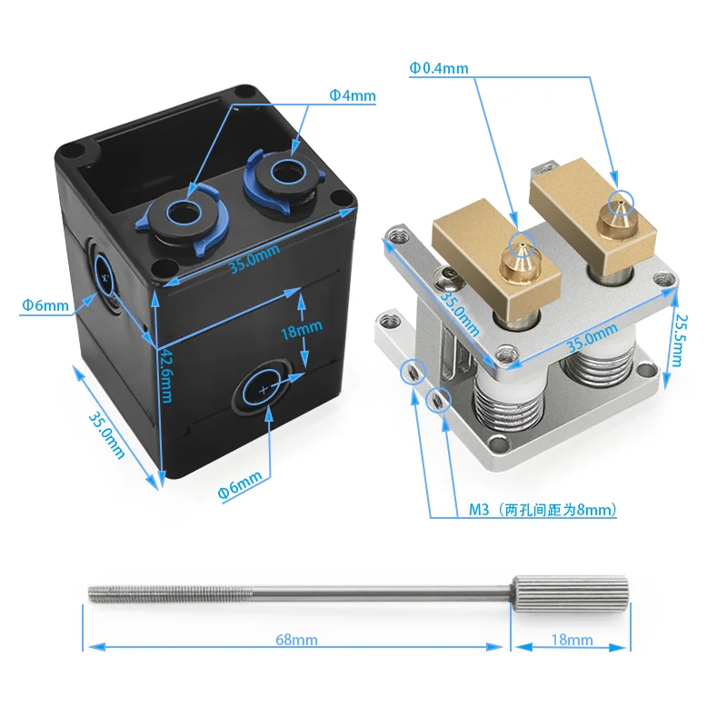 Brand NameSiboorModel NumberUltimaker2OriginMainland ChinaItem TypeHot EndMeasurement unitpiece/piecesEach pack1Type1Dual Extrusion Head Hot End UM2
