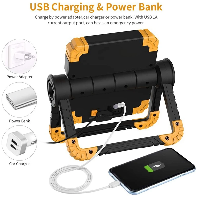 360 градусов гибкий и складной: вращение на 360 градусов позволяет Рабочей лампе быстро отрегулировать нужный вам угол, а также складной прожектор отвечает потребностям двустороннего освещения, для обеспечения всенаправленного освещения