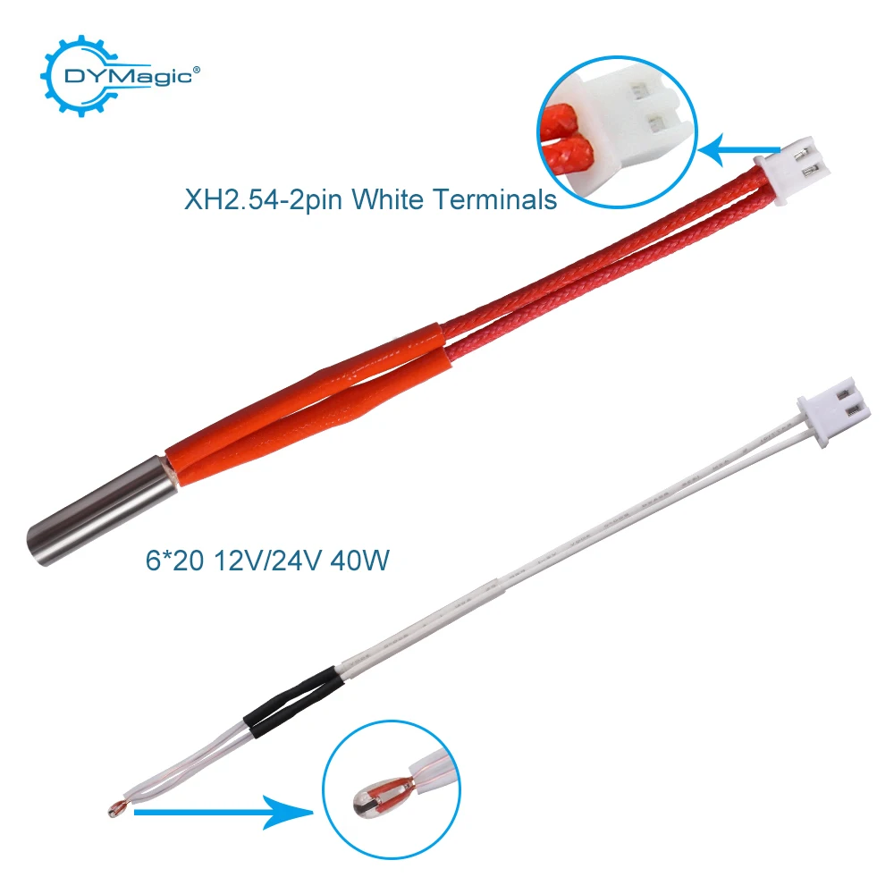 5 комплектов нагревательный картридж 12 в 40 Вт 6*20 мм с 2pin XH2.54 клеммой 100 к NTC 3950 термистор PH2.0 2pin нагрев DIY 3D принтер Часть