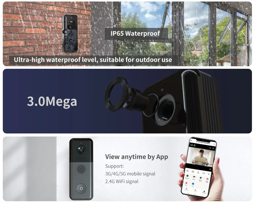 Встроенный микрофон и динамик позволяет в режиме реального времени 2 способ обсуждения и позволяет вам видеть, слышать и говорить с посетителей от ваш мобильный телефон, планшет, независимо от того, где вы находитесь, независимо от того, занимаетесь ли вы работой или бегом в парке, вы можете следить за своей дверью и дистанционно управлять ею в вашем приложении
