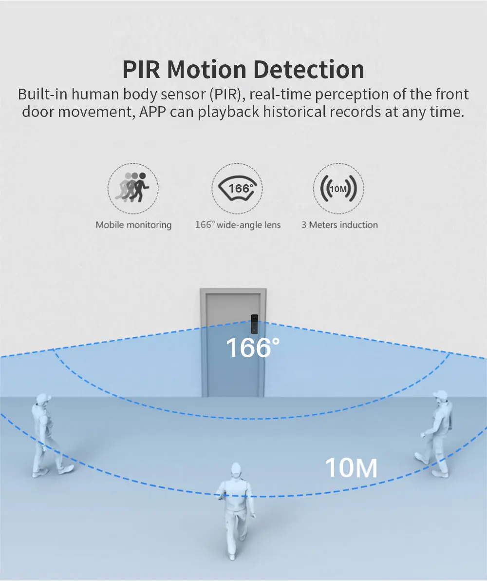 Встроенный датчик человеческого тела (PIR), восприятие движения фронтальной двери в реальном времени, приложение может воспроизводить истории в любое время;