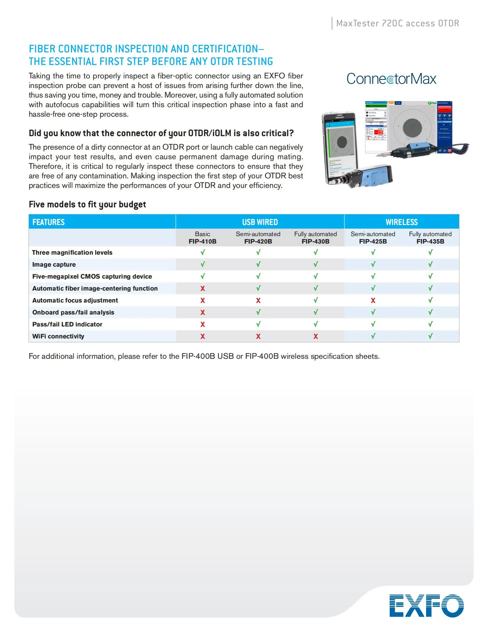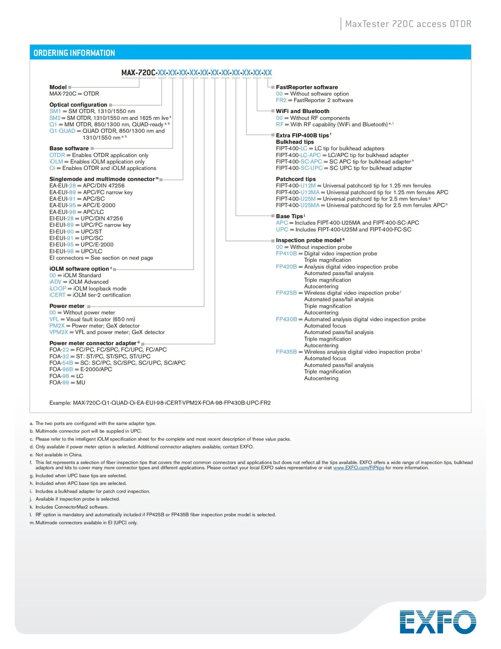 | FTB-720C-Q1-XX | Мм OTDR модуль Порт 1: 850/1300 нм, 27/29 дБ (50/125 & 62,5/125 мкм) Порт 2: оборудование SM готово и обновлено до 1310/1550 нм |