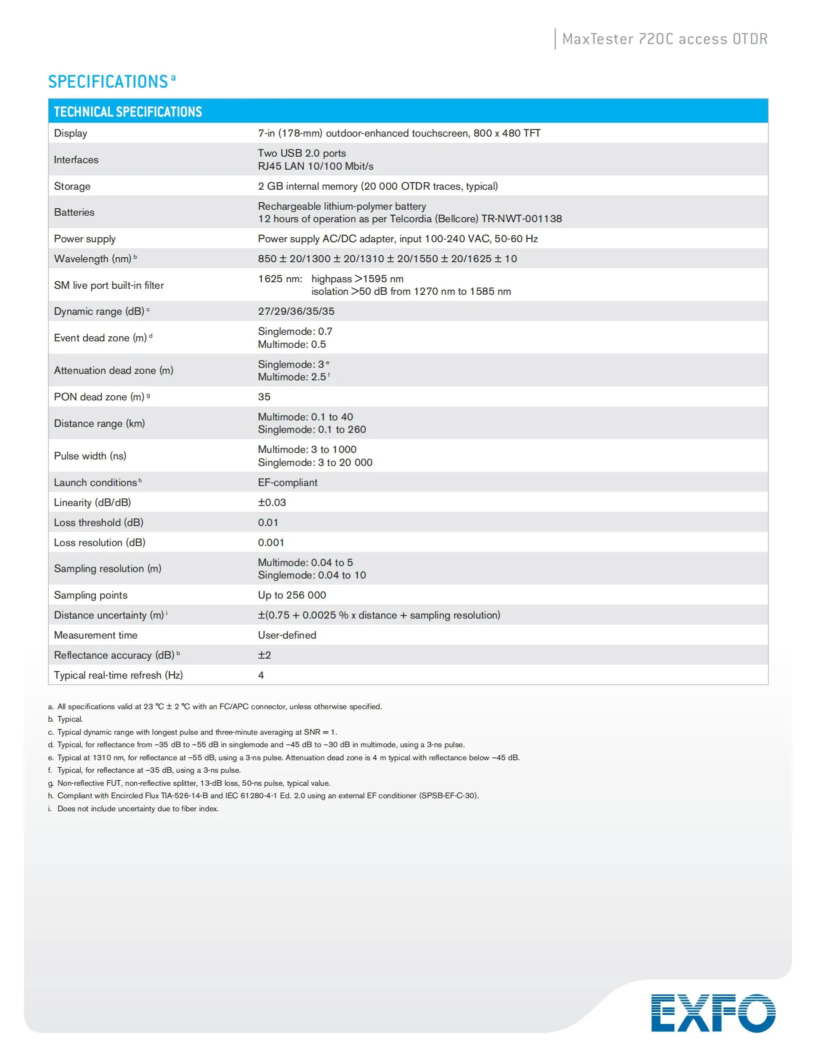 Оригинальный EXFO MAX-720C-SM1 FTTx/PON OTDR тестер динамический диапазон 36/34 дБ SM 1310/1550nm оптический временной домен рефлектометр