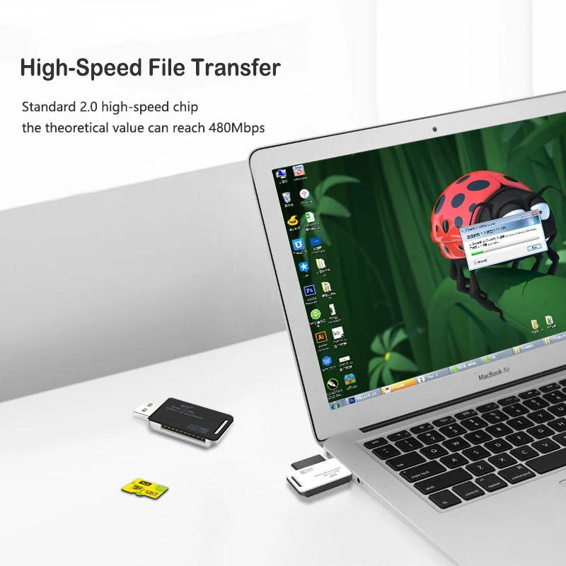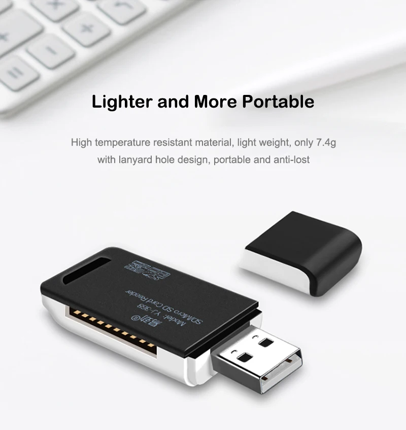 Характеристики продукта: два слота для карт, поддержка серии TF и sd-карт, высокоскоростное чтение файлов, широкая совместимость, высокоскоростное чтение и запись данных, Стабильная и надежная производительность, стандарт передачи USB2.0, легкий и компактный, только 7,4 г, легко носить с собой.