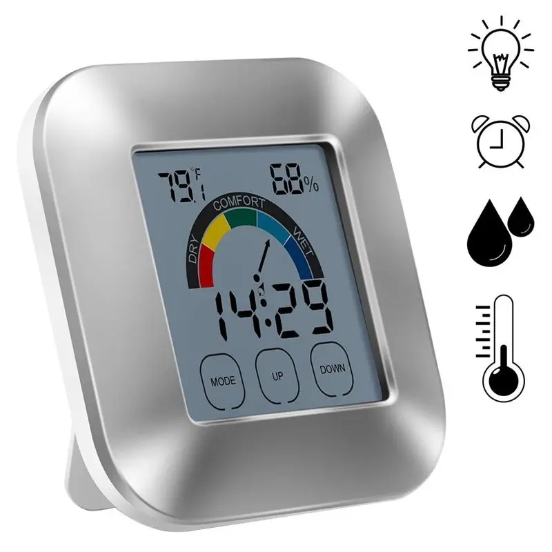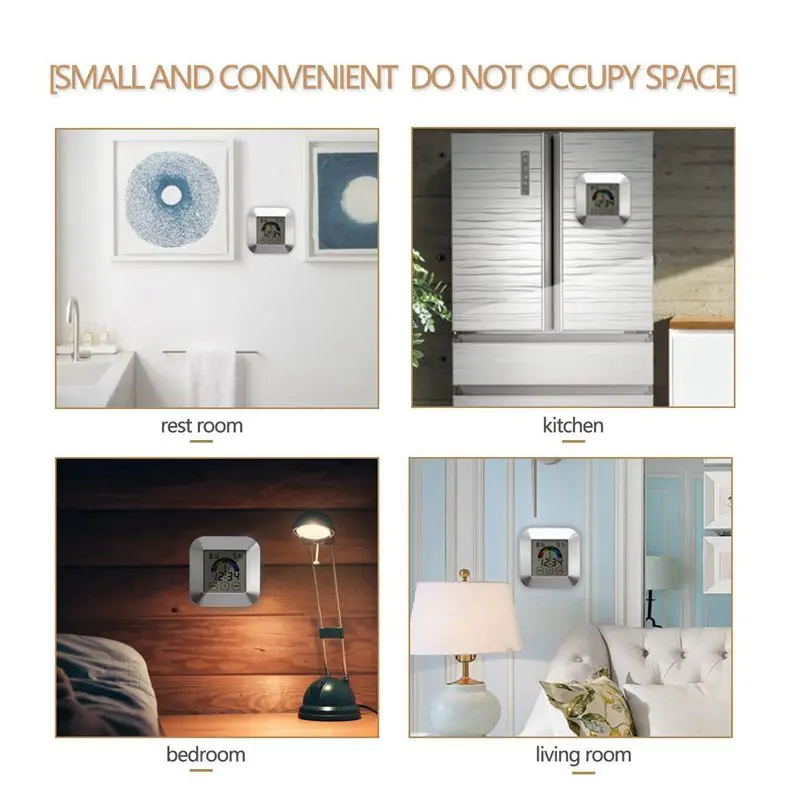 Многофункциональный монитор этот продукт идеально подходит для точного контроля влажности и температуры в помещении. Более того, это также цифровые часы с функцией будильника. Элегантный внешний вид Компактный и мини, экономя пространство для вашего стола.