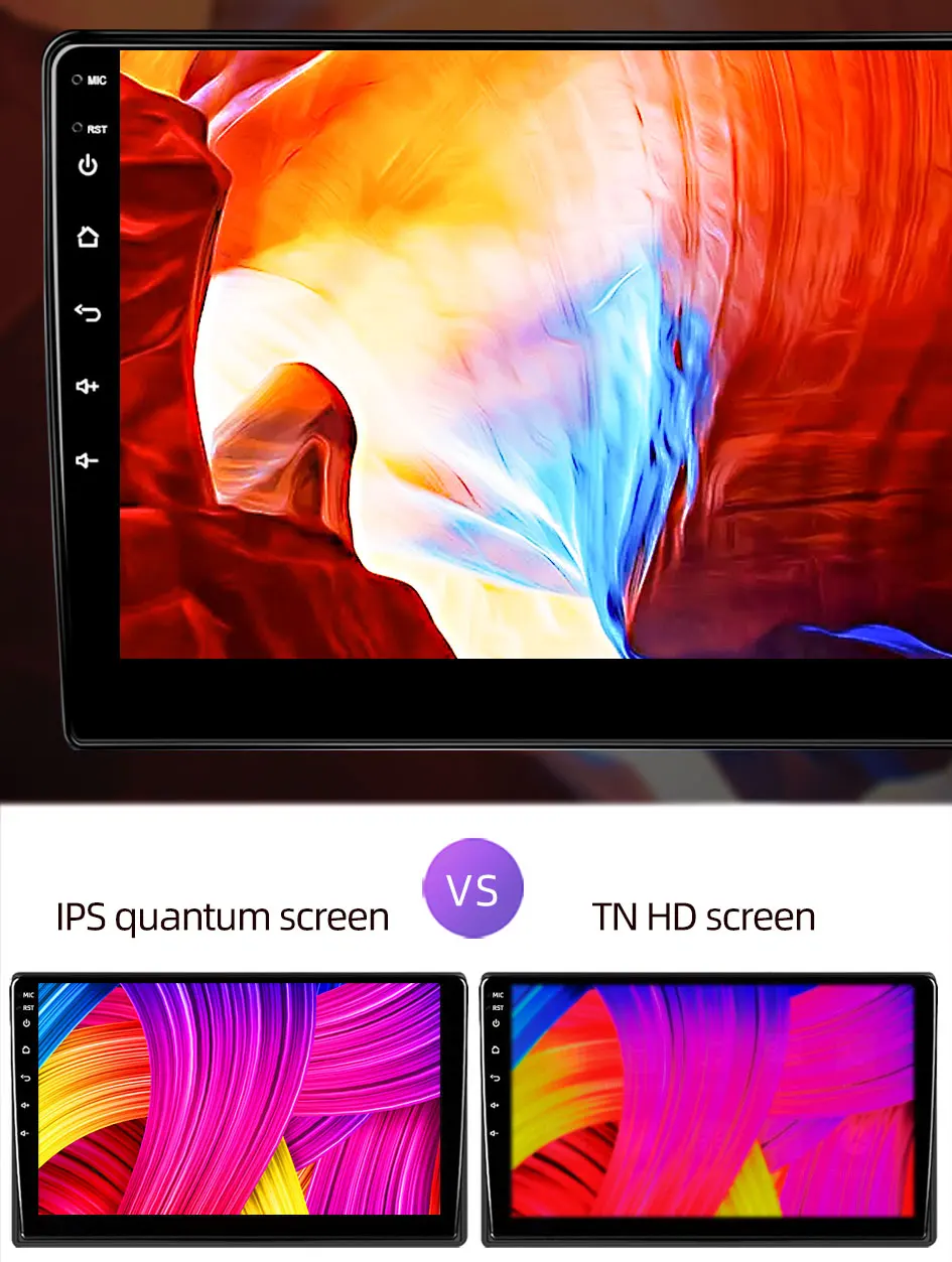 Используя ультра-чистый экран IPS, цвет является истинным и ярким, который более чувствителен к прикосновениям, чем традиционный автомобильный экран, и имеет более широкий угол обзора!