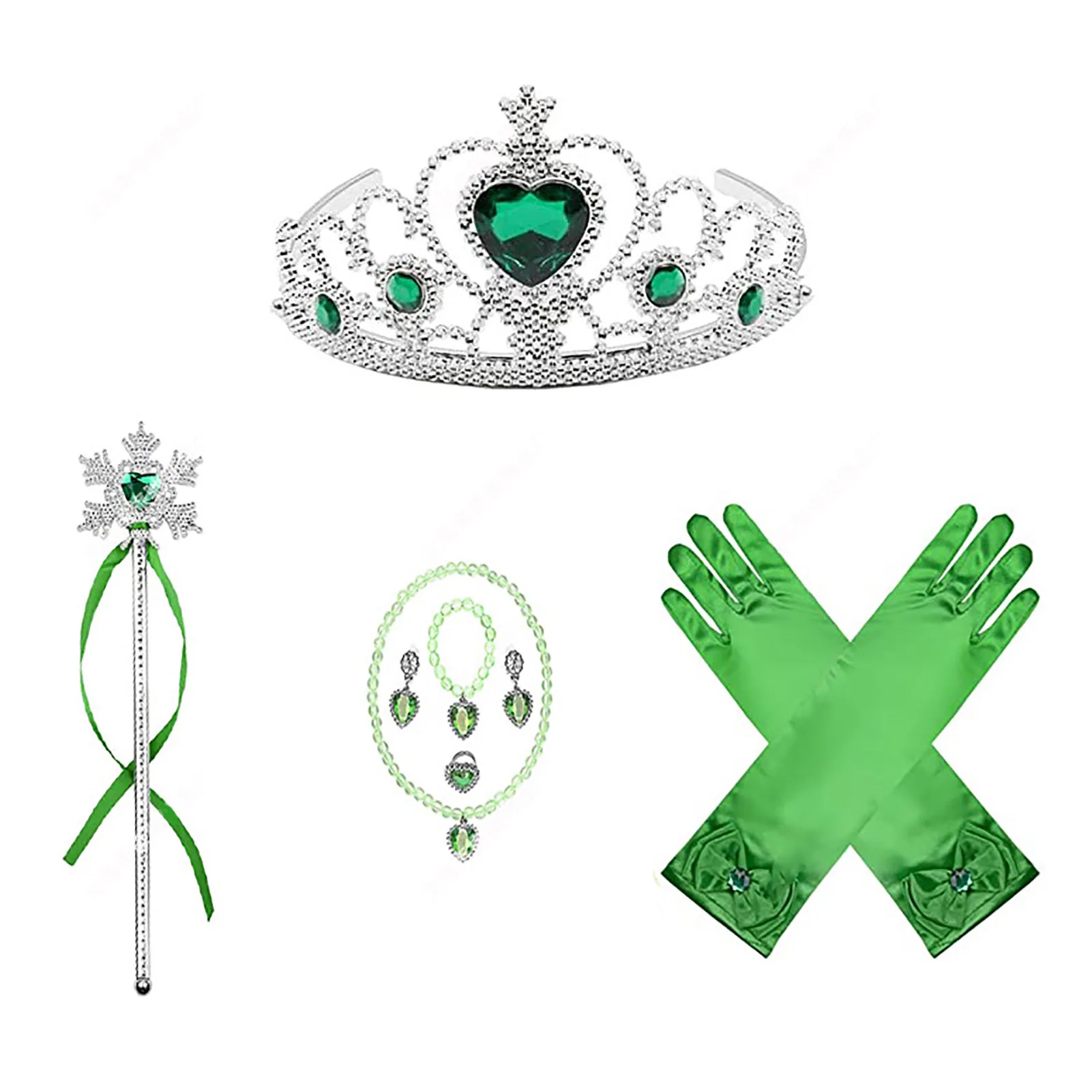 Зеленый костюм принцессы на День Св. Патрика в Ireland, костюм из высококачественной полиэфирной ткани и АБС-пластика, включая синюю корону со стразами, юбку, перчатки Эльзы, волшебную палочку, кольцо, ожерелье, браслет, серьги с серебряными краями, которые красивые и блестящие. Воплотить в жизнь мечту принцессы вашей маленькой девочки-это ваш первый выбор.