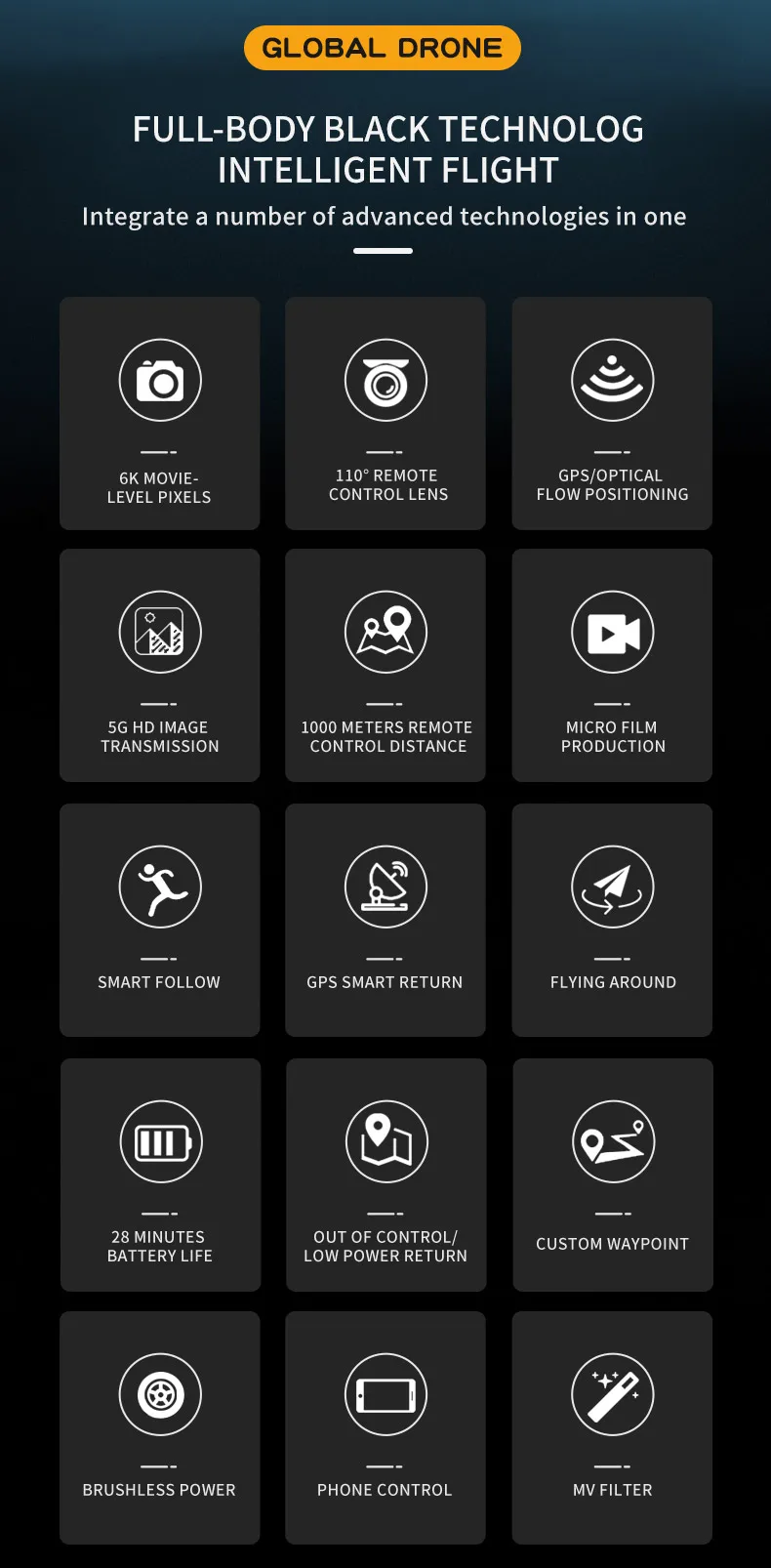 GPS возврат одним нажатием кнопки в точку отключения, низкое энергопотребление, отсутствие возврата сигнала; GPS умные следования: после подключения самолета к GPS Откройте функцию отслеживания приложения, самолет следует за мобильный телефон; Изображение: 1-5 м от самолета, чтобы определить предмет и автоматический полет; Съемка и распознавание жестов; Маршрутное Многоточечное планирование полета; Объемное окружение с фиксированными точками; Функция восстановления самолета; Функция МВ и т. д.