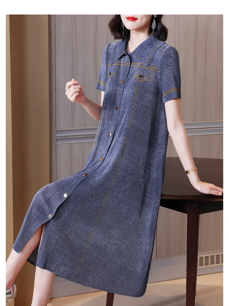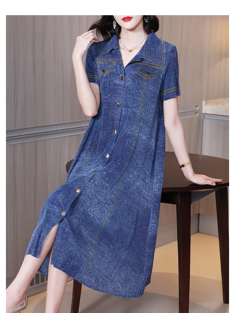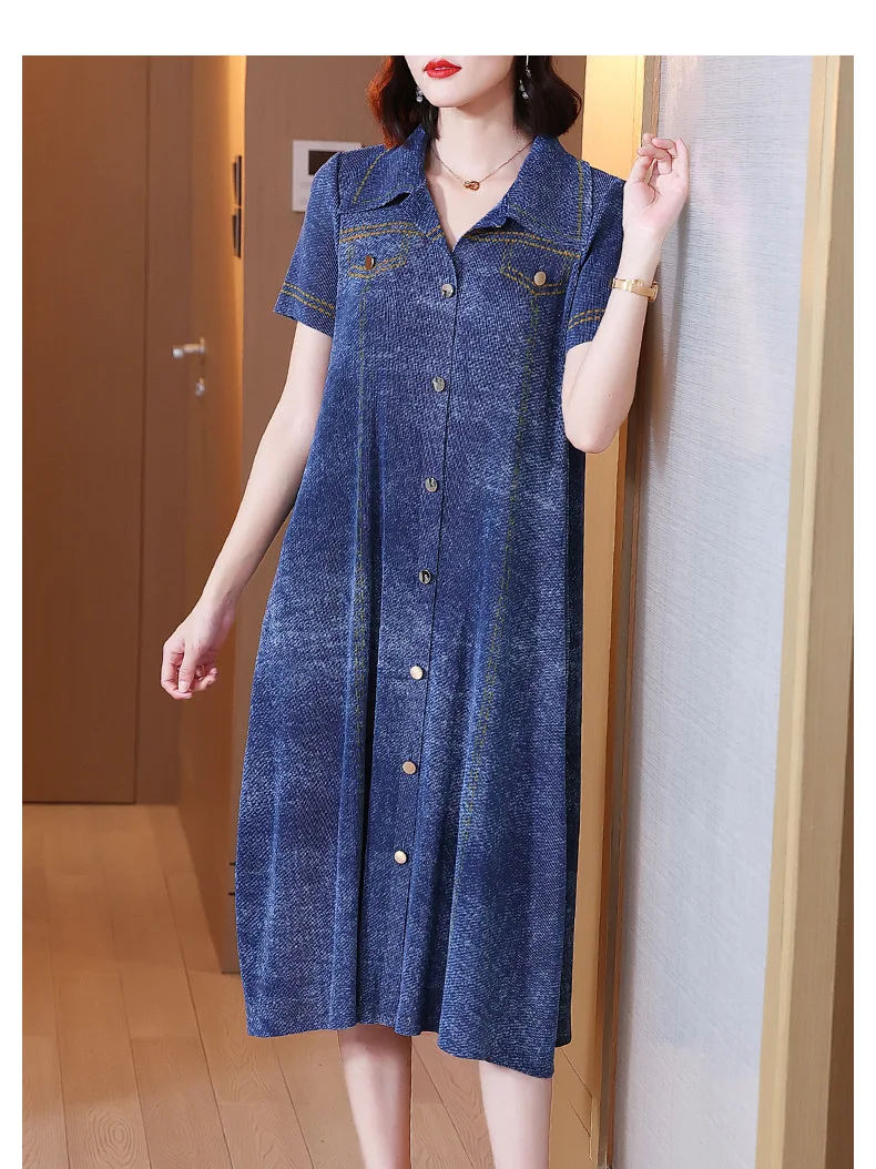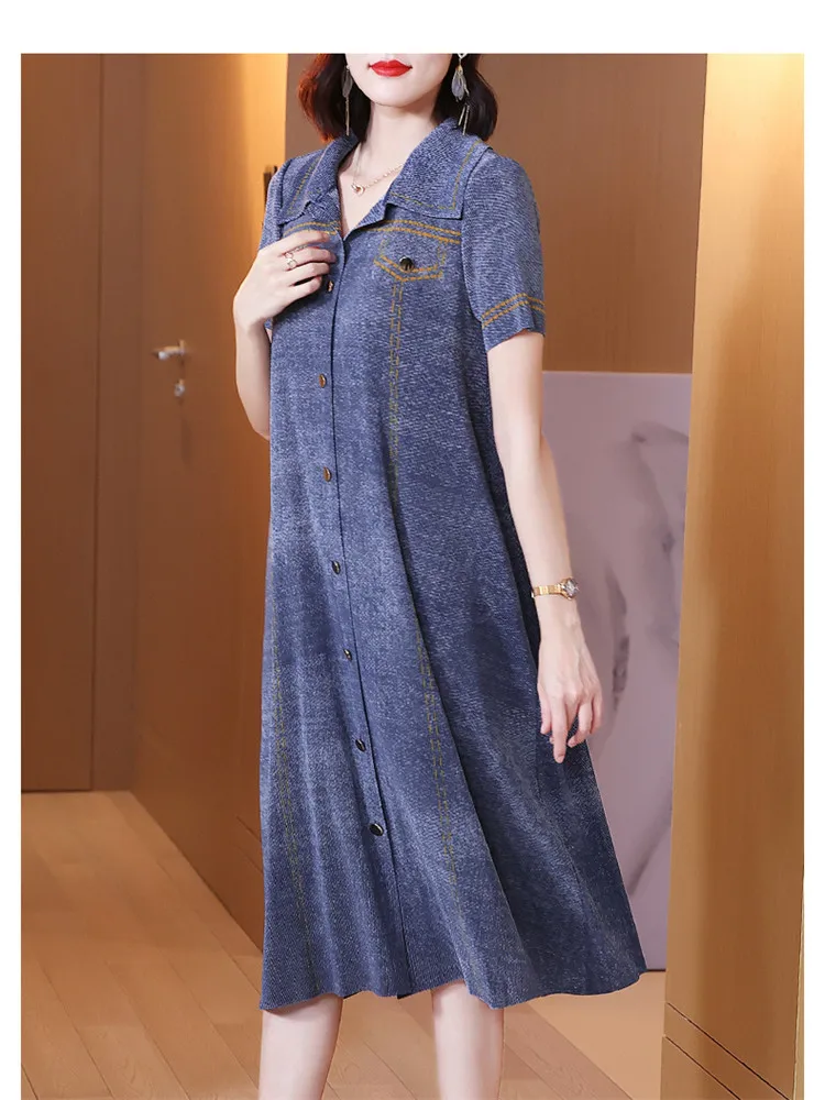 Женское джинсовое платье с вышивкой свободное приталенное большого размера