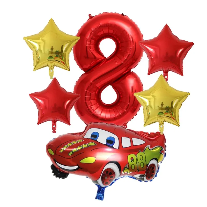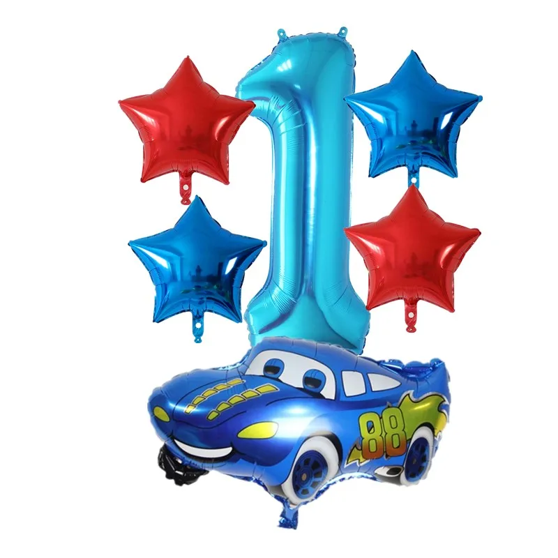6Pcs Large Size Cartoon Car Foil Balloon Set Blue Red 40 Inch Number Star Helium Globos Birthday Party Decoration Ball Boy Toys