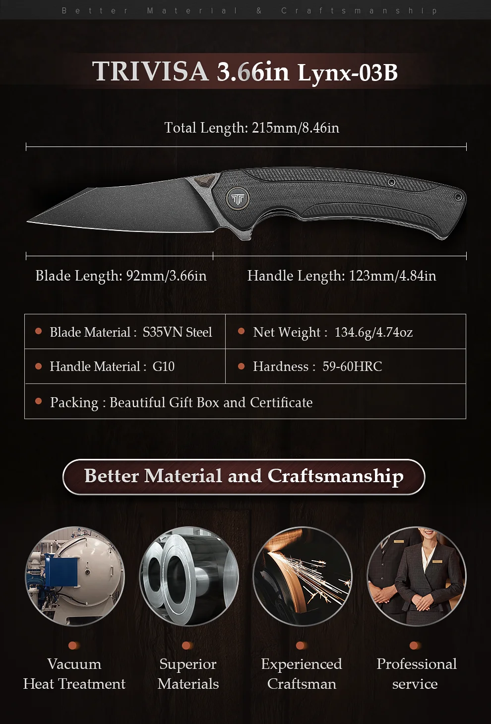 TRIVISA Lynx серии 3,66 дюймов CPM S35VN порошок стальной складной нож